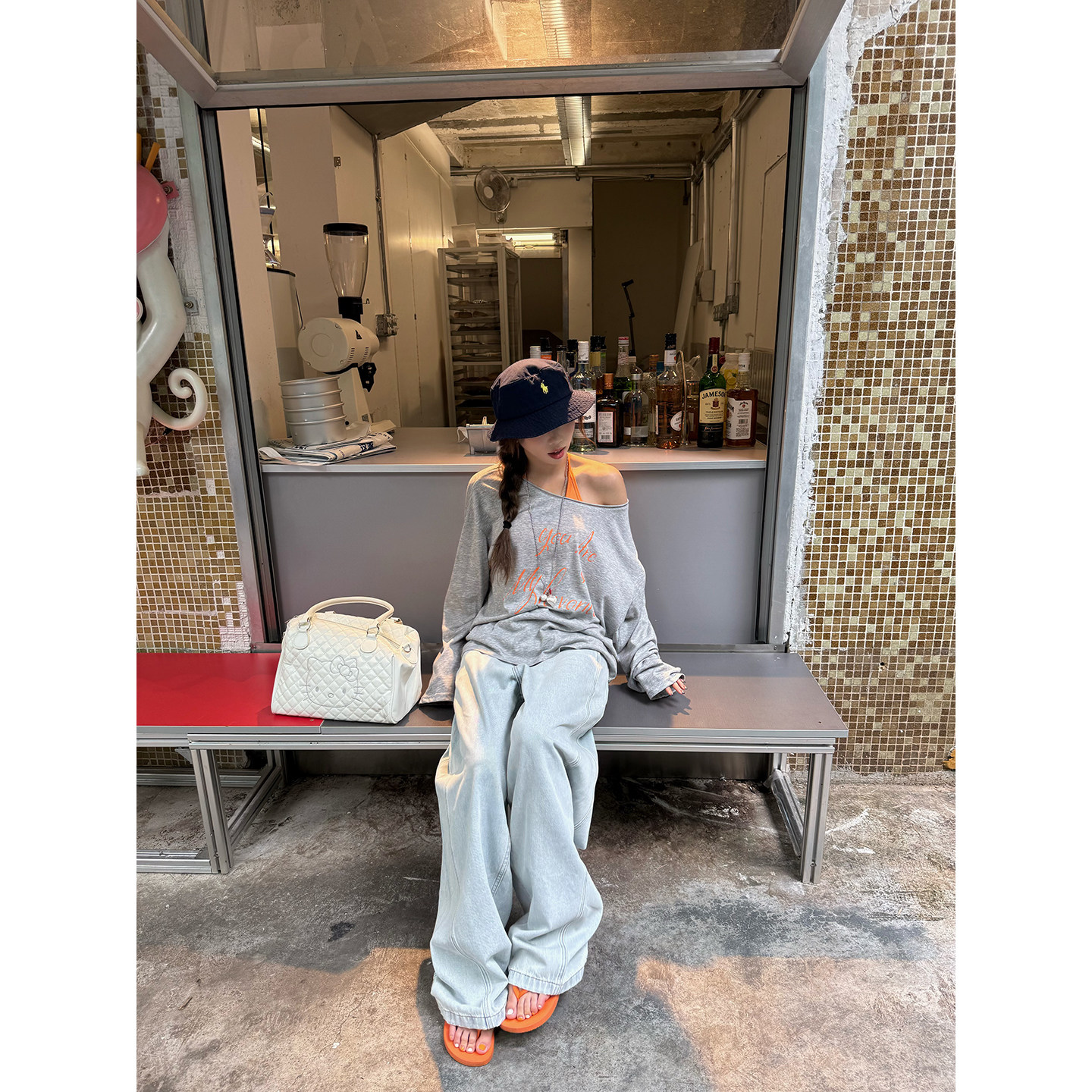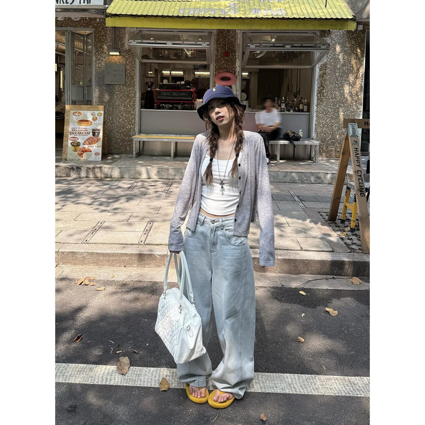 荒荒家浅蓝色弯刀牛仔裤