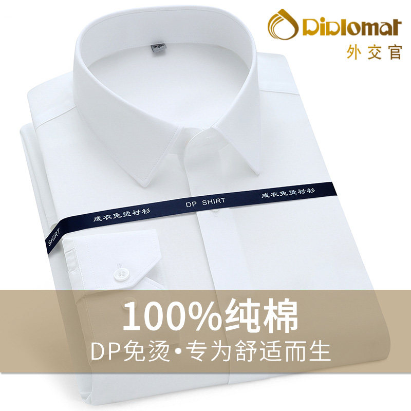 全棉衬衫男长袖DP免烫抗皱商务正装职业装高级感男士衬衣白色