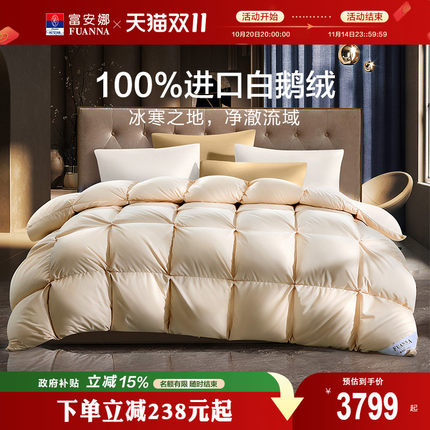 富安娜被子乌克兰进口95白鹅绒羽绒被保暖冬被单双人春秋加厚被芯