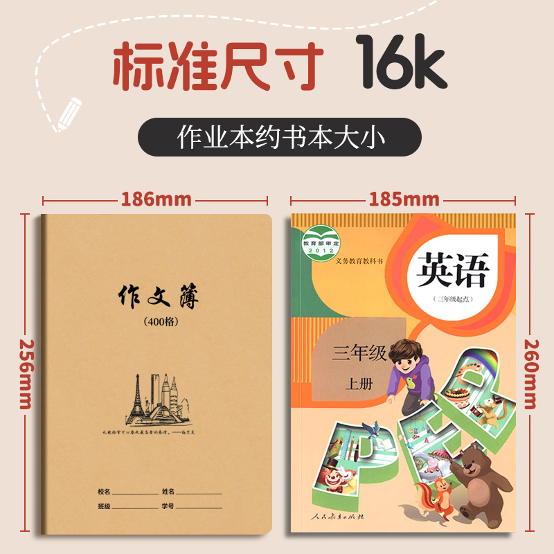 16k英语本数学本子小学生专用400格300字加厚四五二三年级上册语文作业本英语练习簿大初中生牛皮纸方格批发