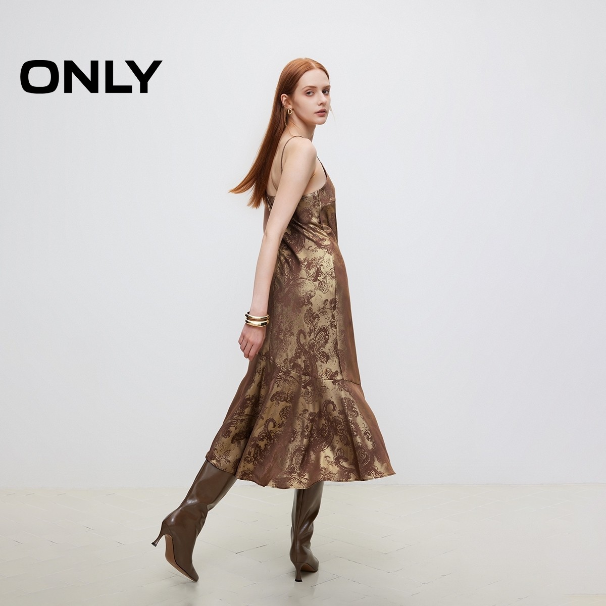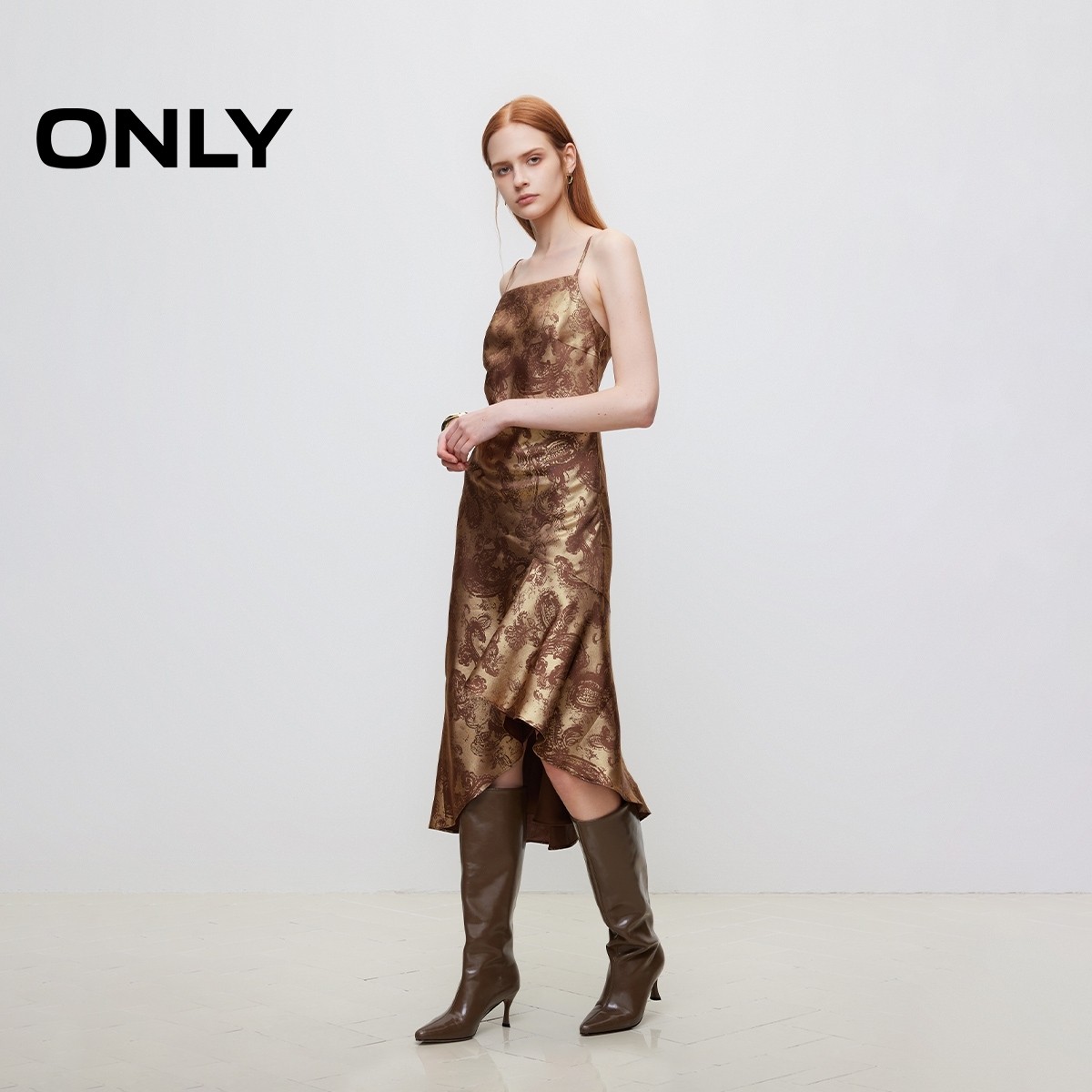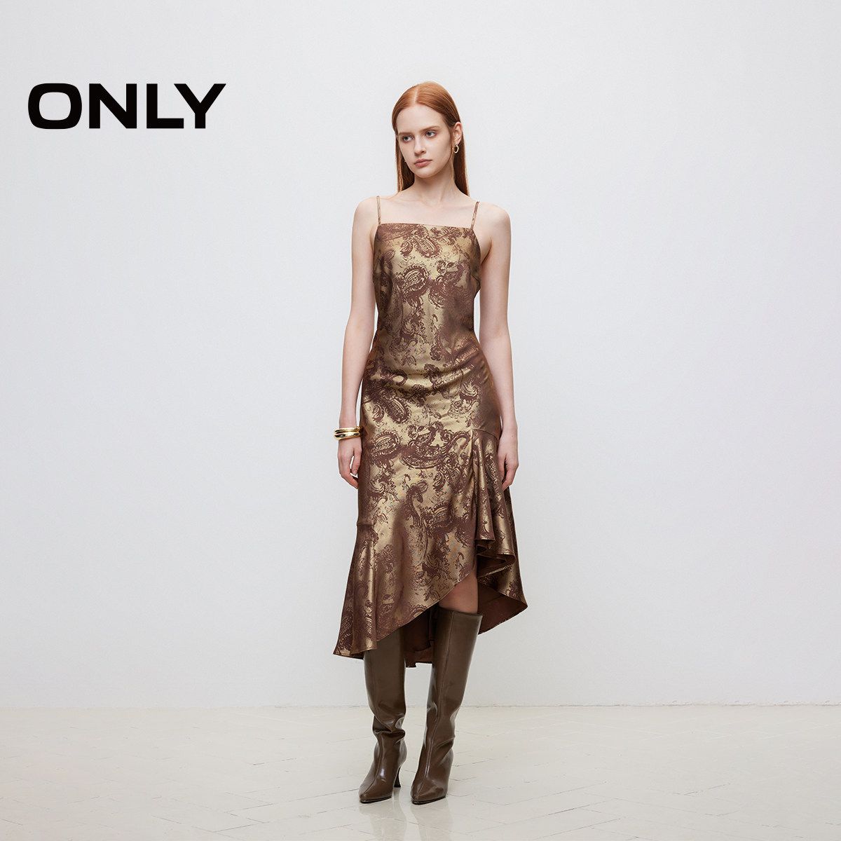 ONLY性感不规则吊带中长款连衣裙