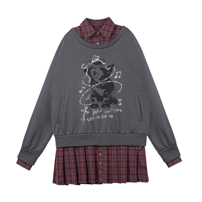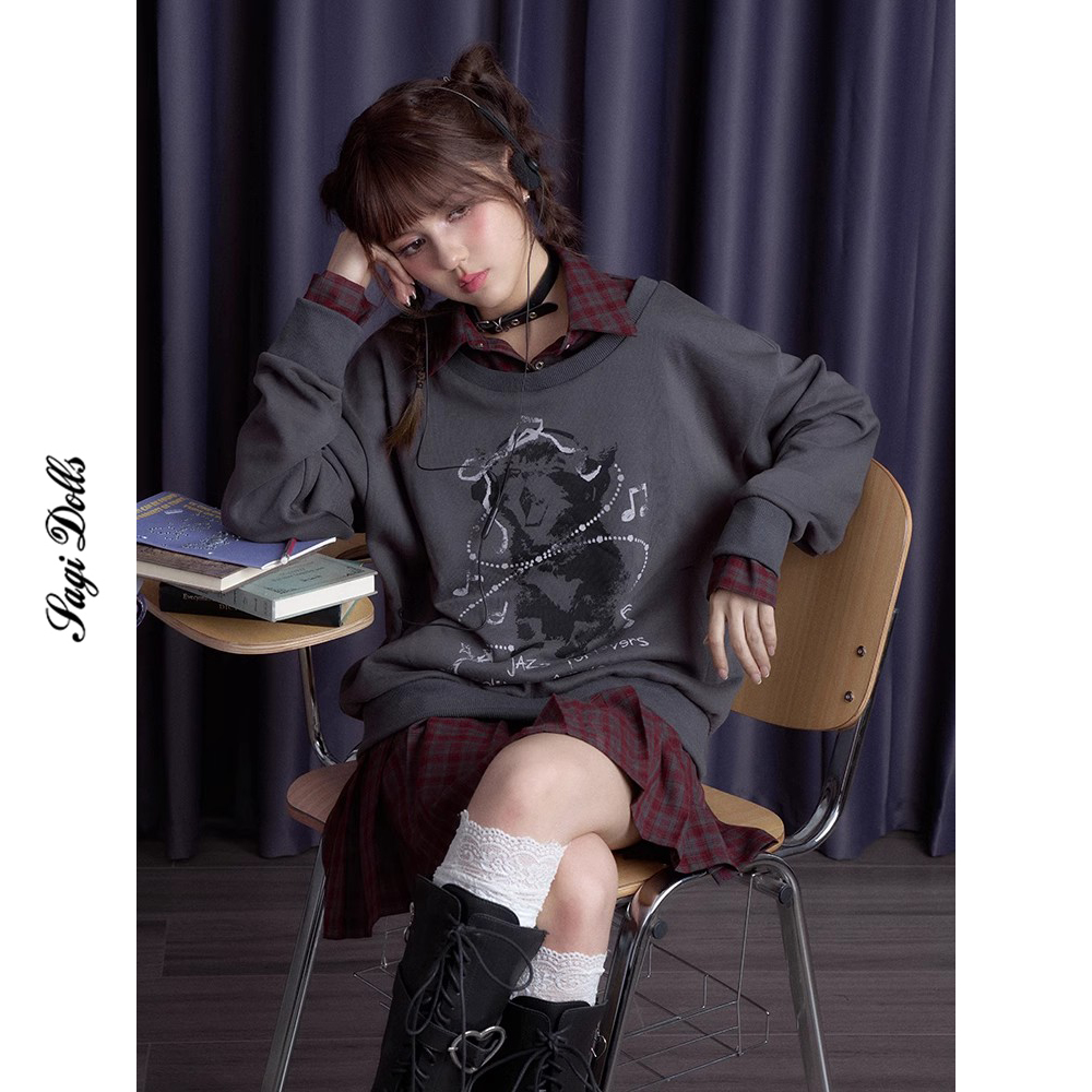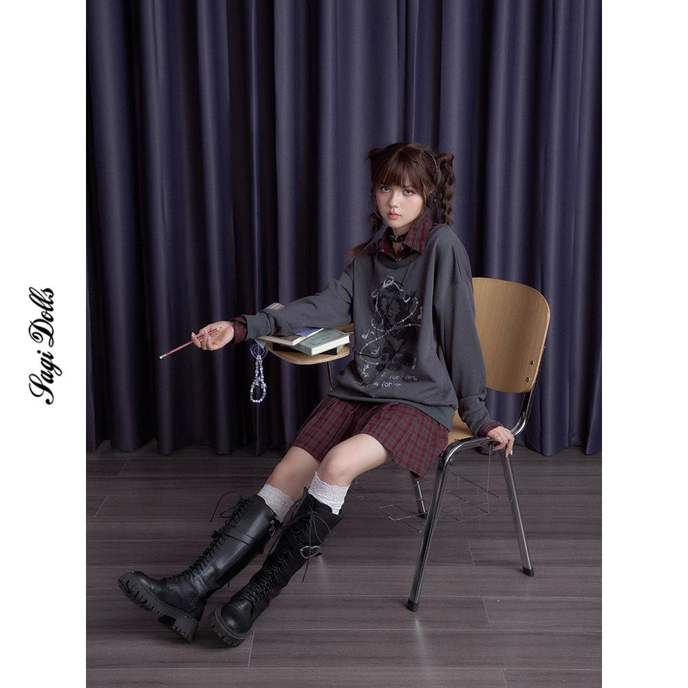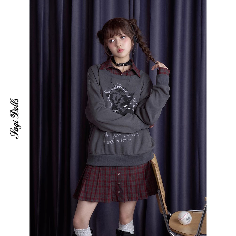 SagiDolls少女斗志 【假两件连衣裙】甜酷摇滚红格卫衣裙松弛感秋