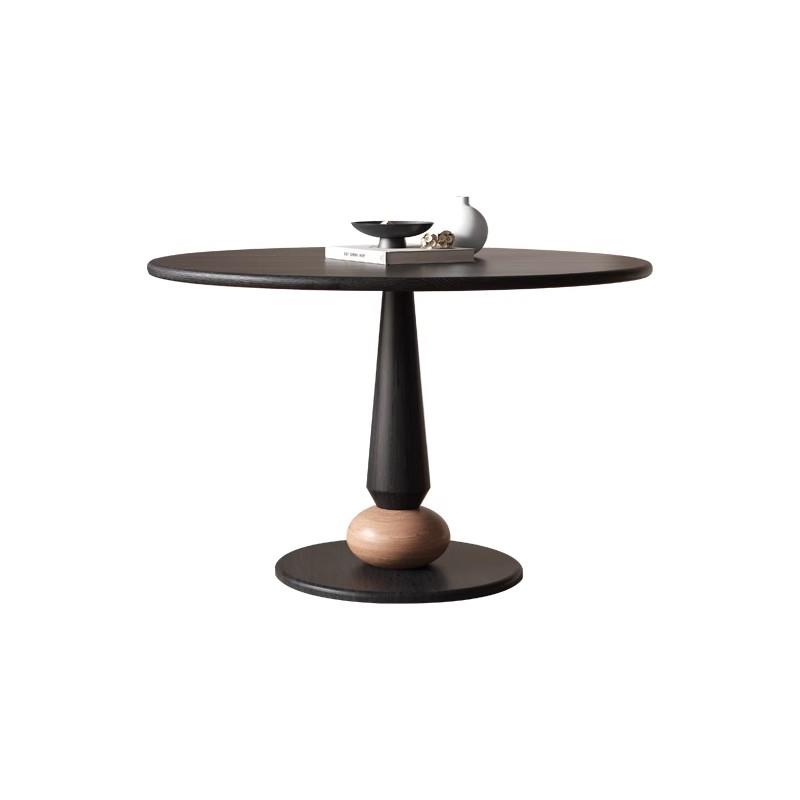 法式中古风实木圆形餐桌黑色复古家用小户型创意小圆桌原木吃饭桌