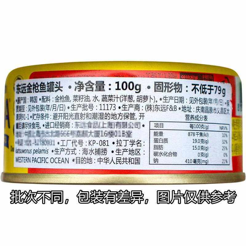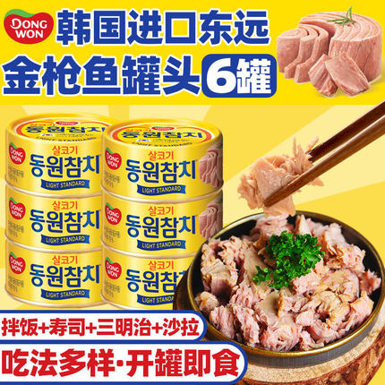 东远韩国金枪鱼罐头100g*6 即食海鲜油浸吞拿鱼罐头沙拉寿司食材