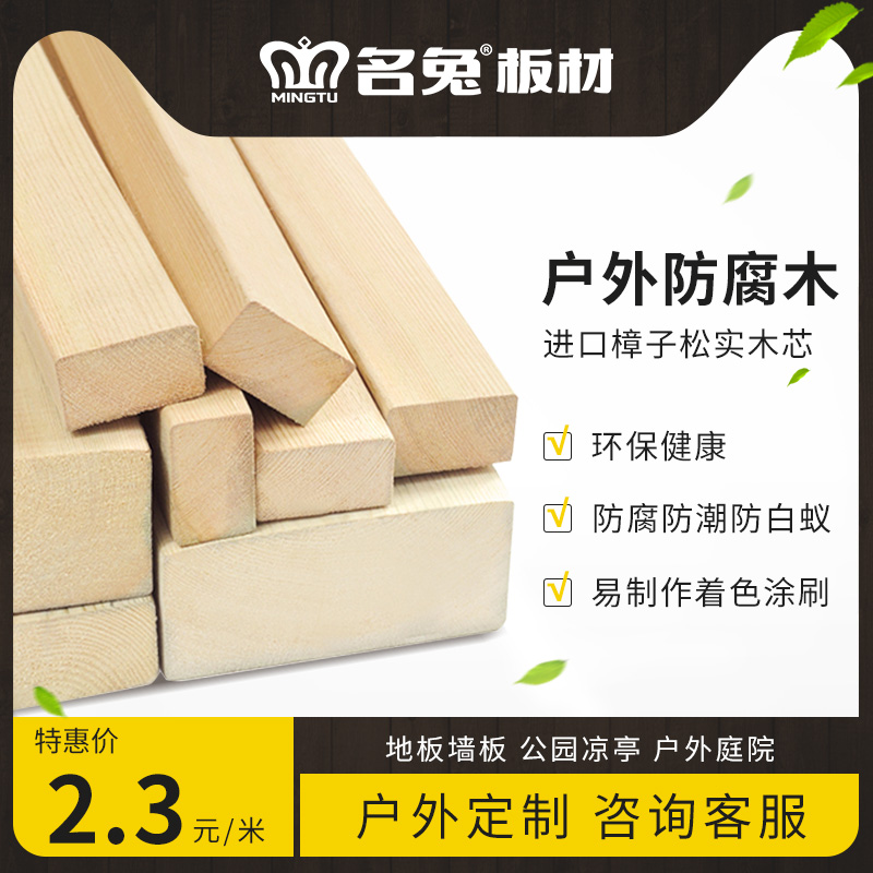名兔板材 樟子松防腐木 室内室外庭院阳台户外地板露台护墙板实木