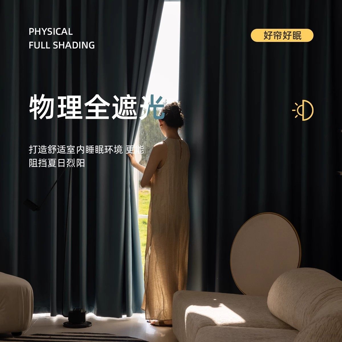 2025新款加厚全遮光窗帘卧室客厅隔热遮阳布简约挂钩家用柯桥
