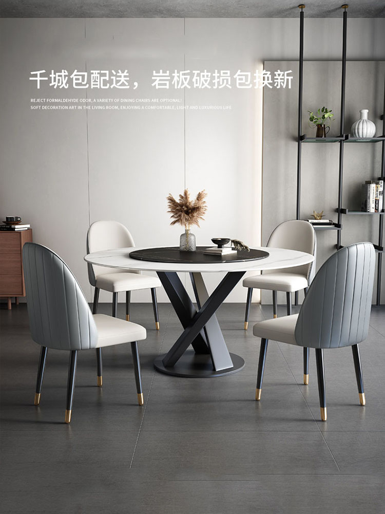 掌上明珠家具岩板餐桌亮光现代简约意式极简圆桌家用小户型餐桌椅