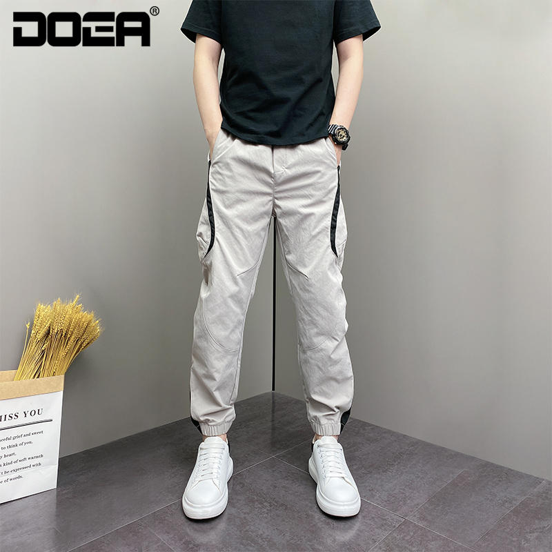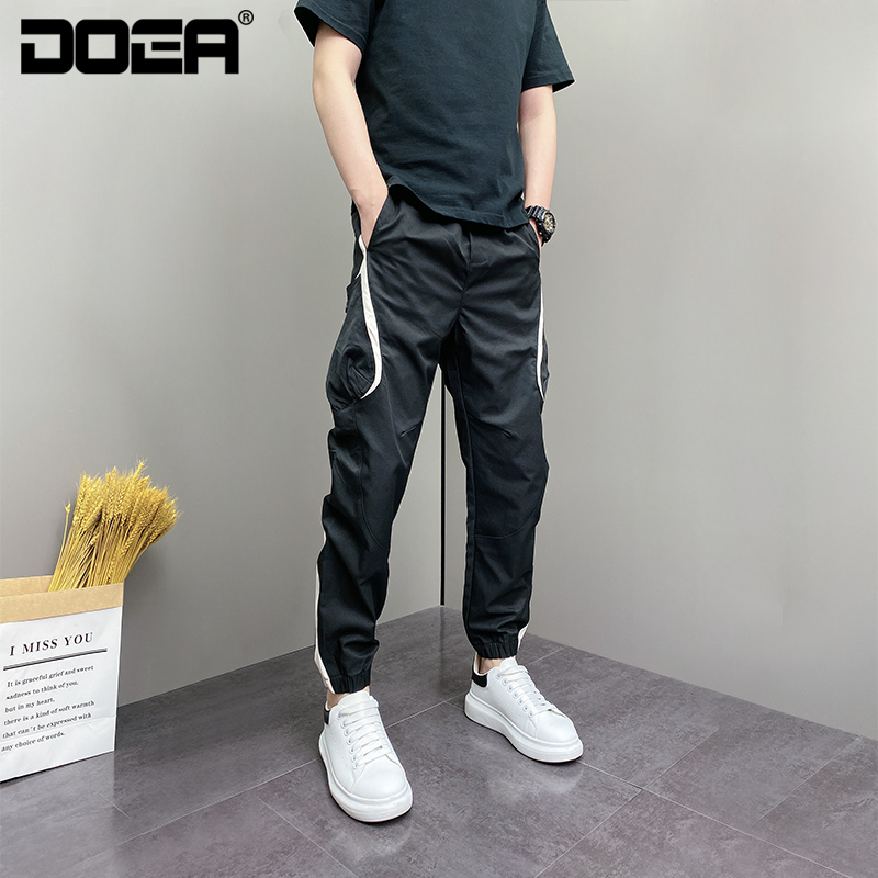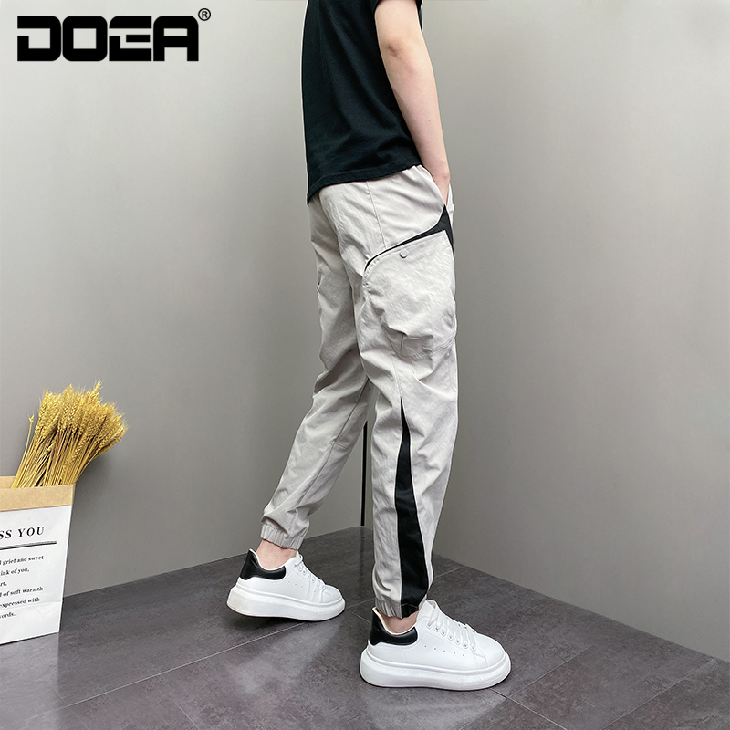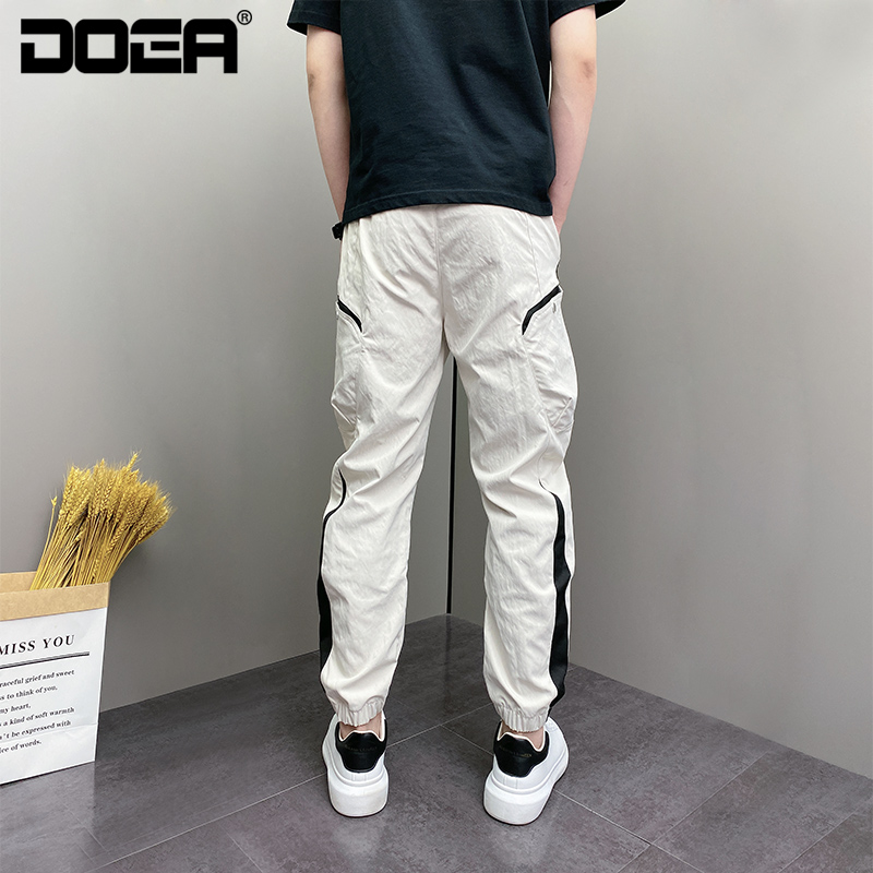 春季潮牌韩版宽松哈伦条纹大口袋长裤美式ins青年男士休闲束脚裤