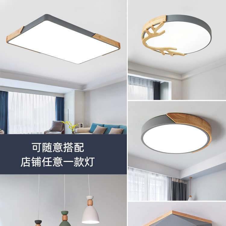 北欧客厅吸顶灯长方形led原木简约风格超薄日式实木卧室灯具家居