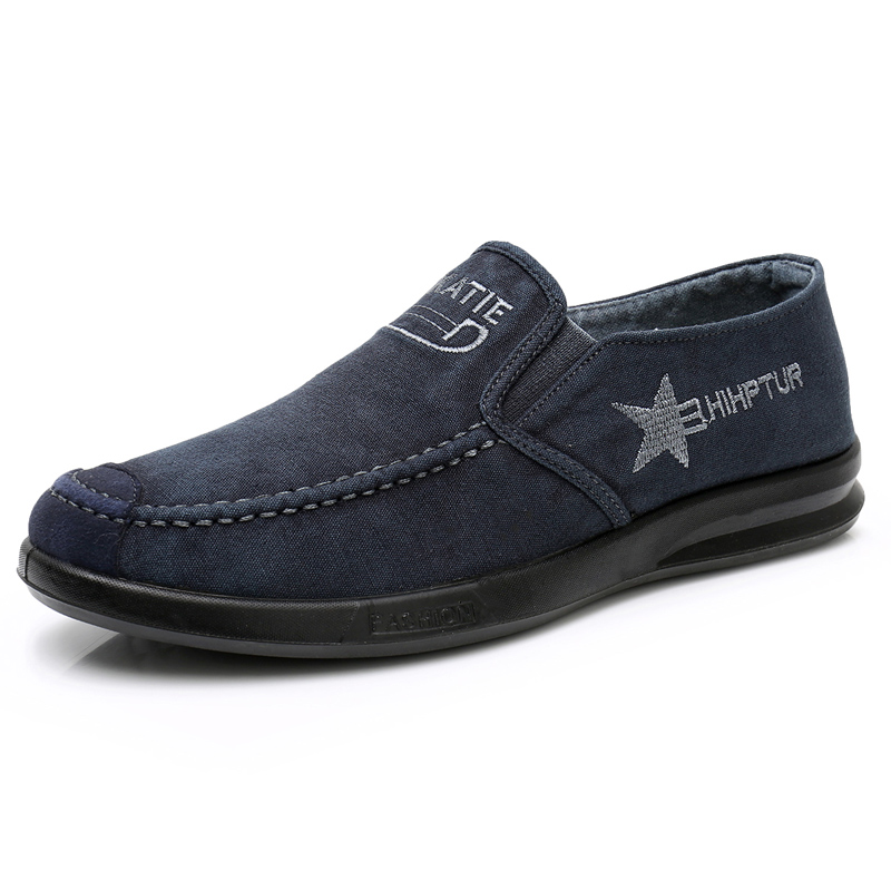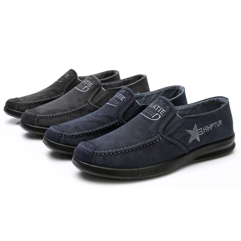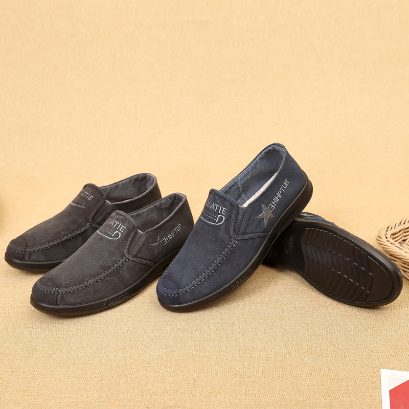 帆布鞋男老北京布鞋春秋透气休闲鞋懒人一脚蹬男单鞋软底爸爸鞋子
