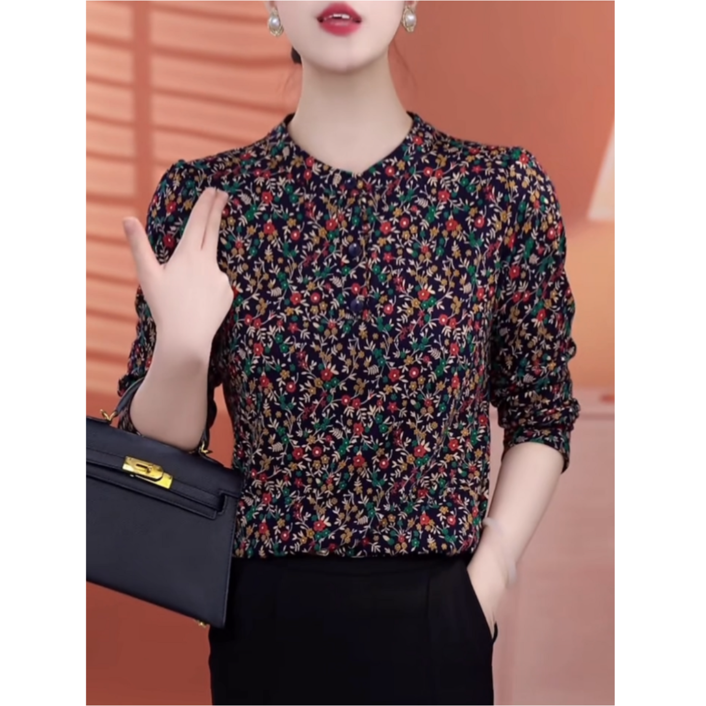 时尚碎花德绒套头上衣女长袖春秋新款妈妈减龄保暖打底小衫上衣