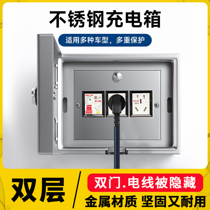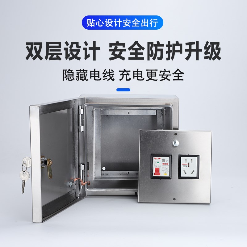 不锈钢配电箱充电箱双层电箱室外防雨带锁防盗户外防水开关插座箱