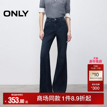 ONLY2025冬季新款通勤复古做旧水洗低腰宽松微喇裤长裤牛仔裤女