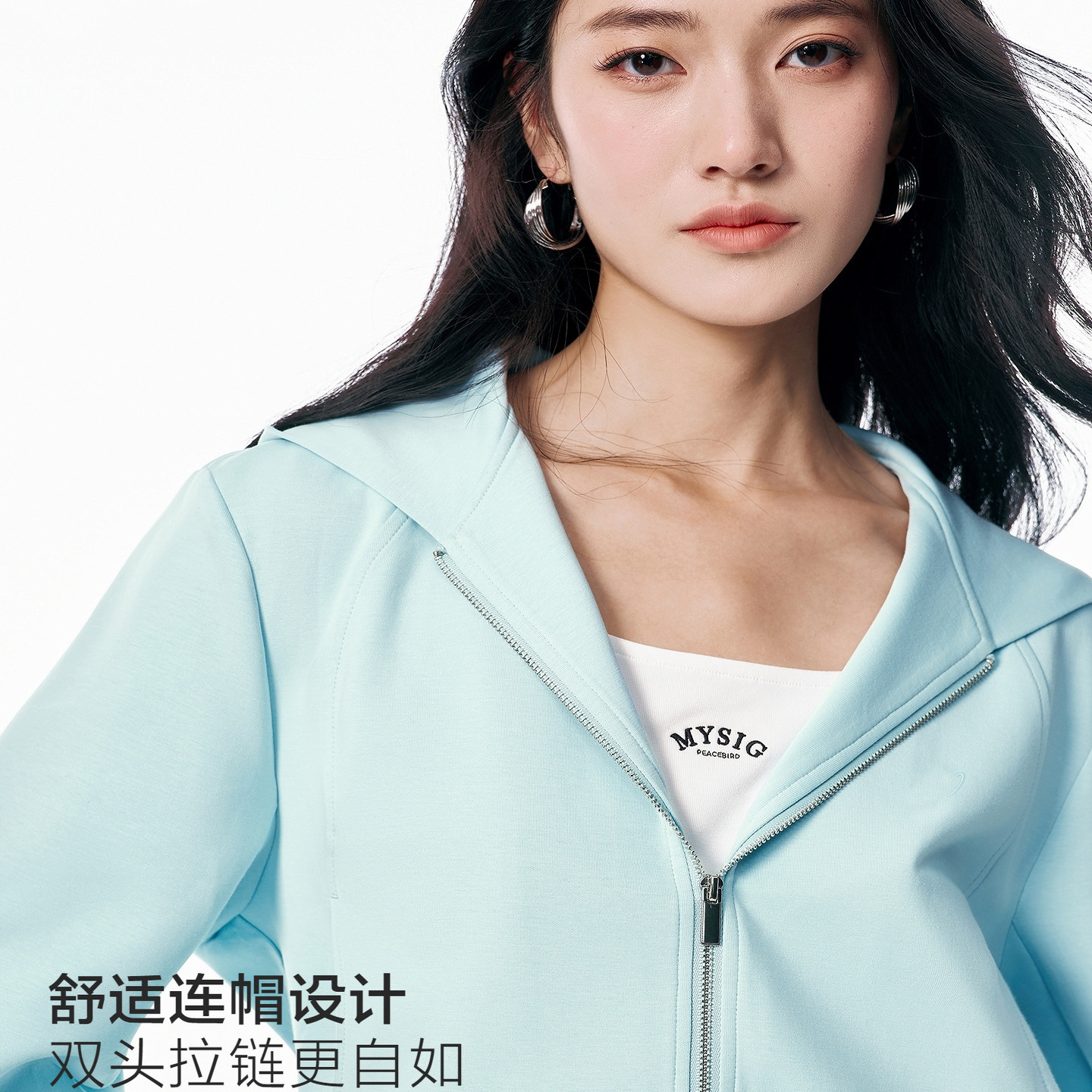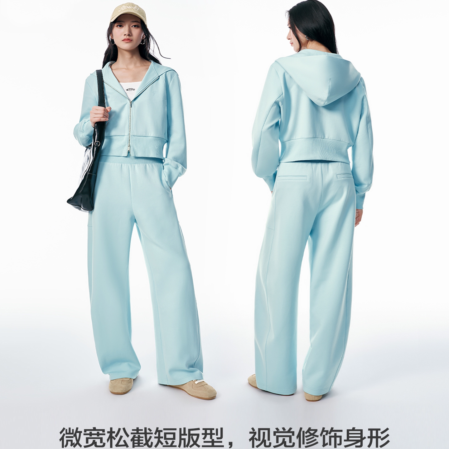商场同款26春新款女海盐薄荷蓝色截短式卫衣外套香蕉裤A1CRG1148