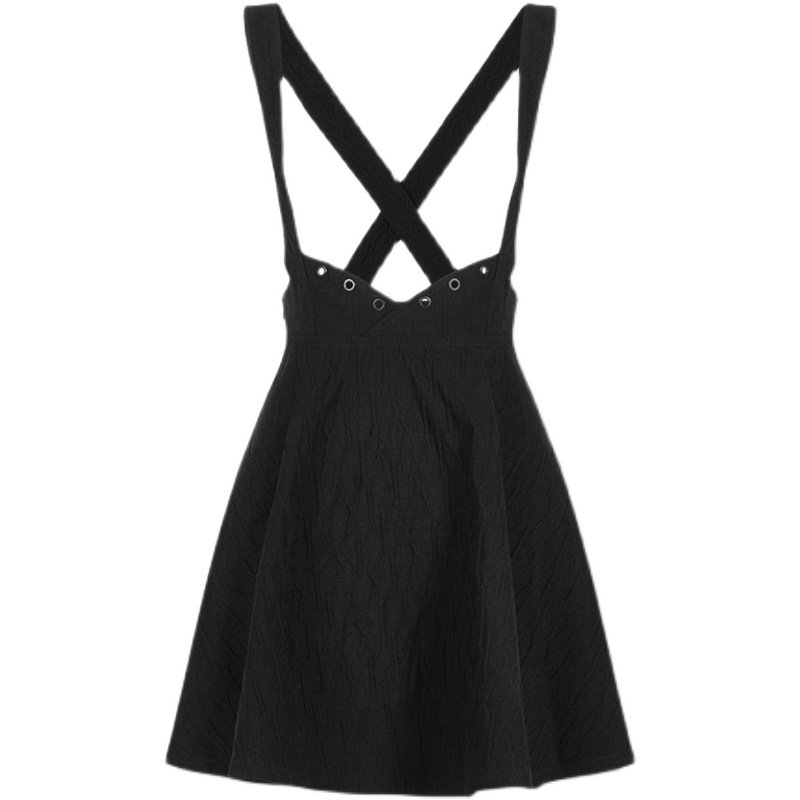 原创黑色背带裙女装春夏季a字短裙半身裙法式复古小个子短裙子ins