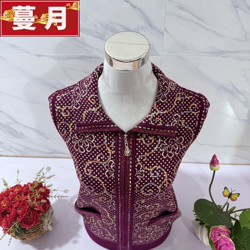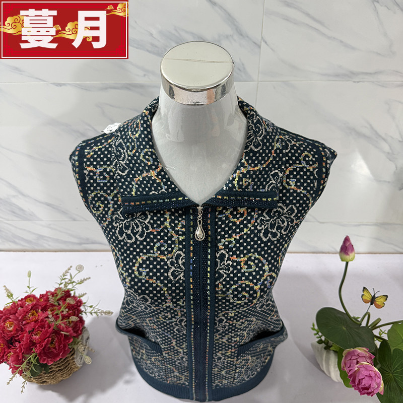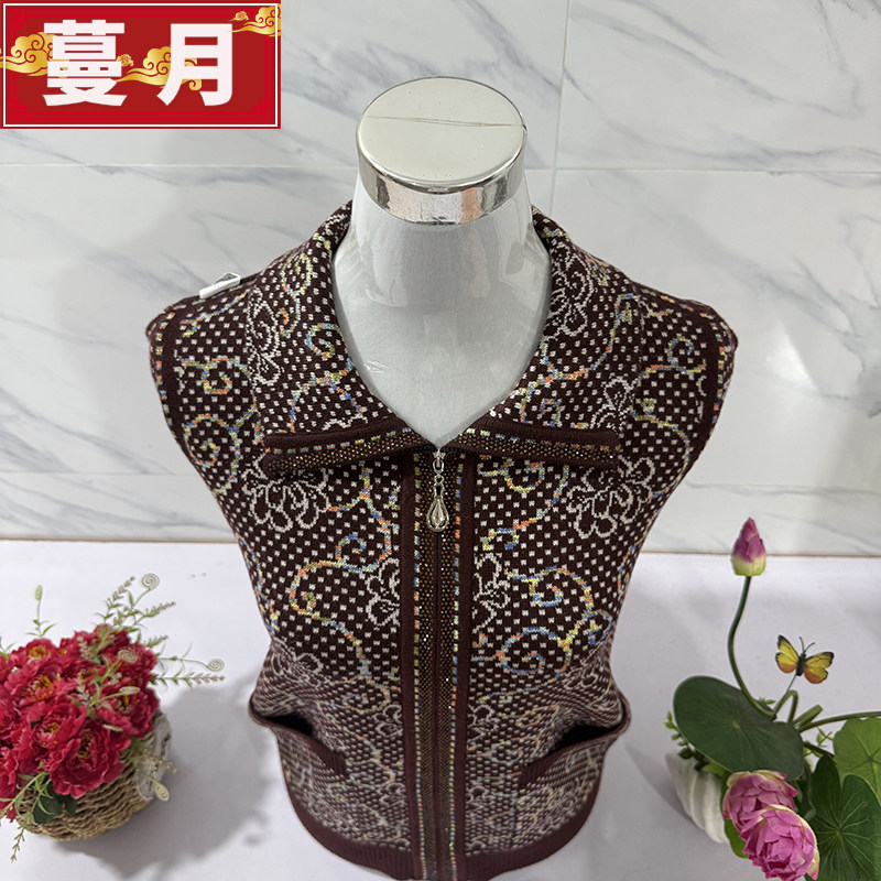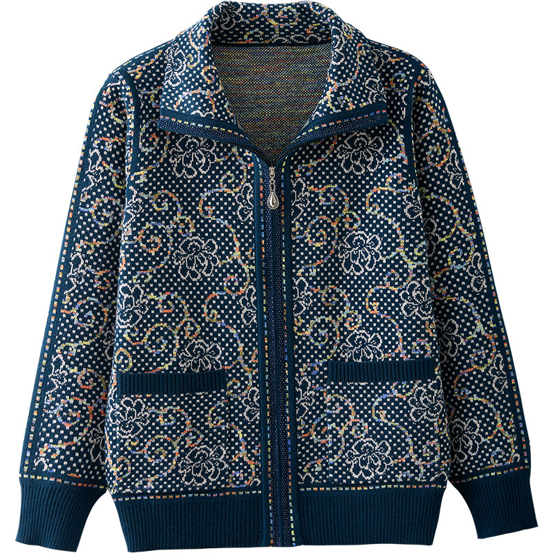 中老年人女妈妈装秋冬季宽松小个子羊毛针织开衫翻领毛衣碎花外套