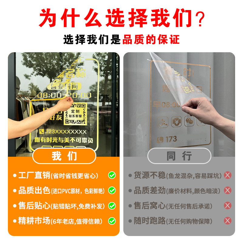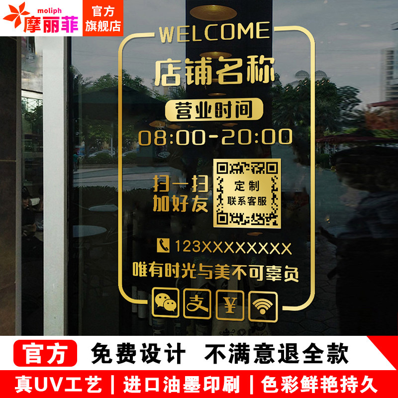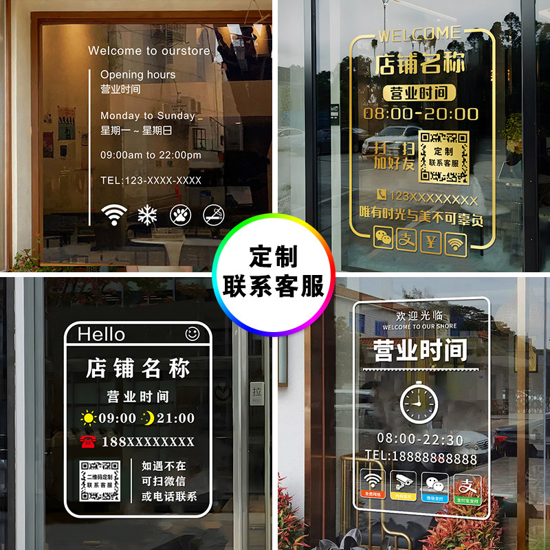 营业时间玻璃门贴纸定制电话二维码店铺商铺创意告示牌广告门贴画