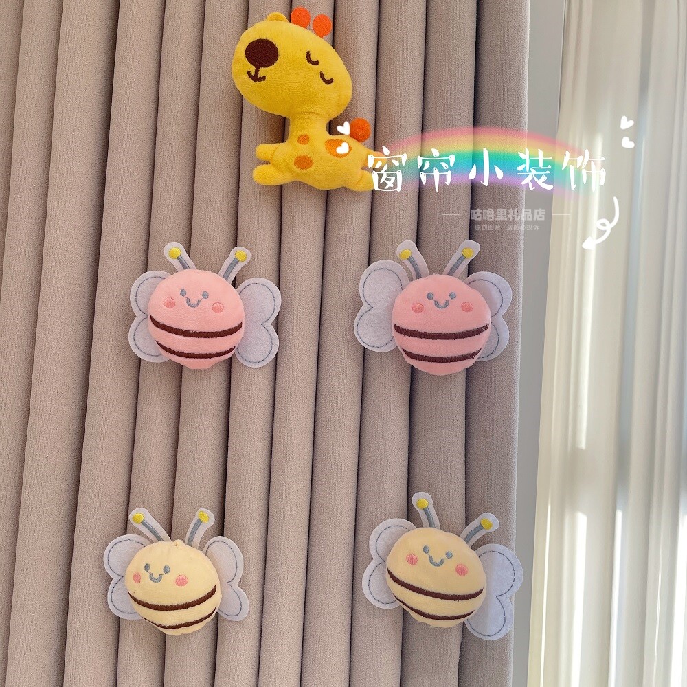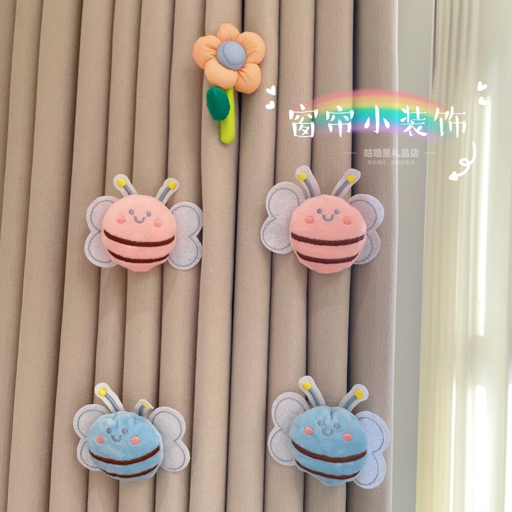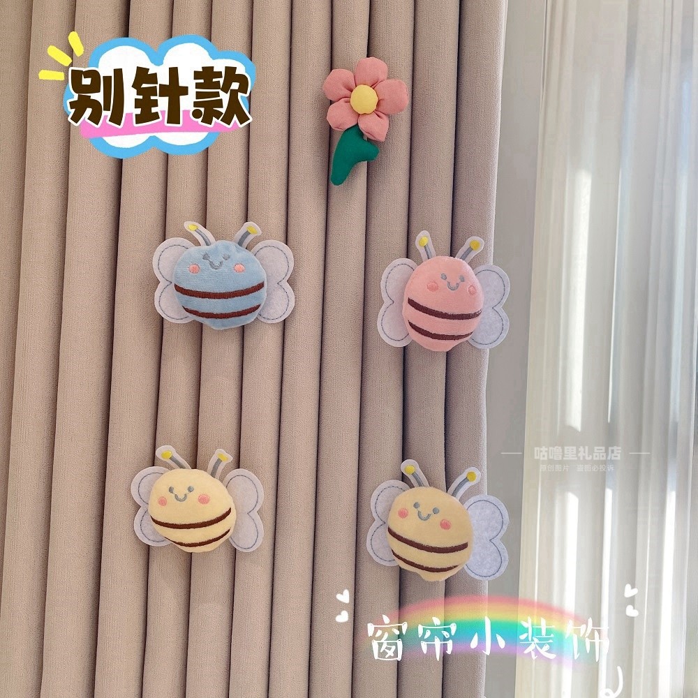 窗帘装饰配件可爱卡通小蜜蜂毛绒公仔儿童房帘头布艺花朵点缀别针