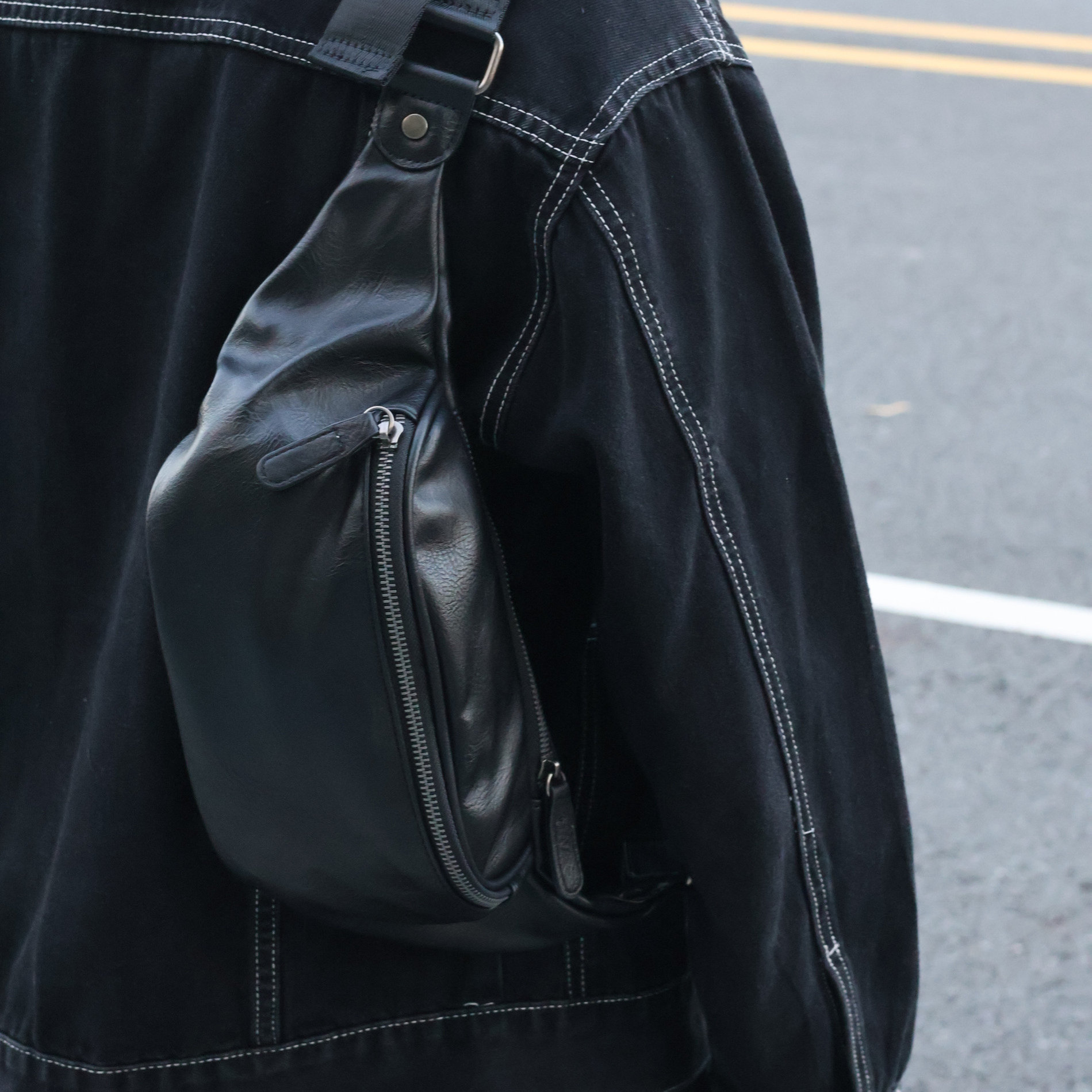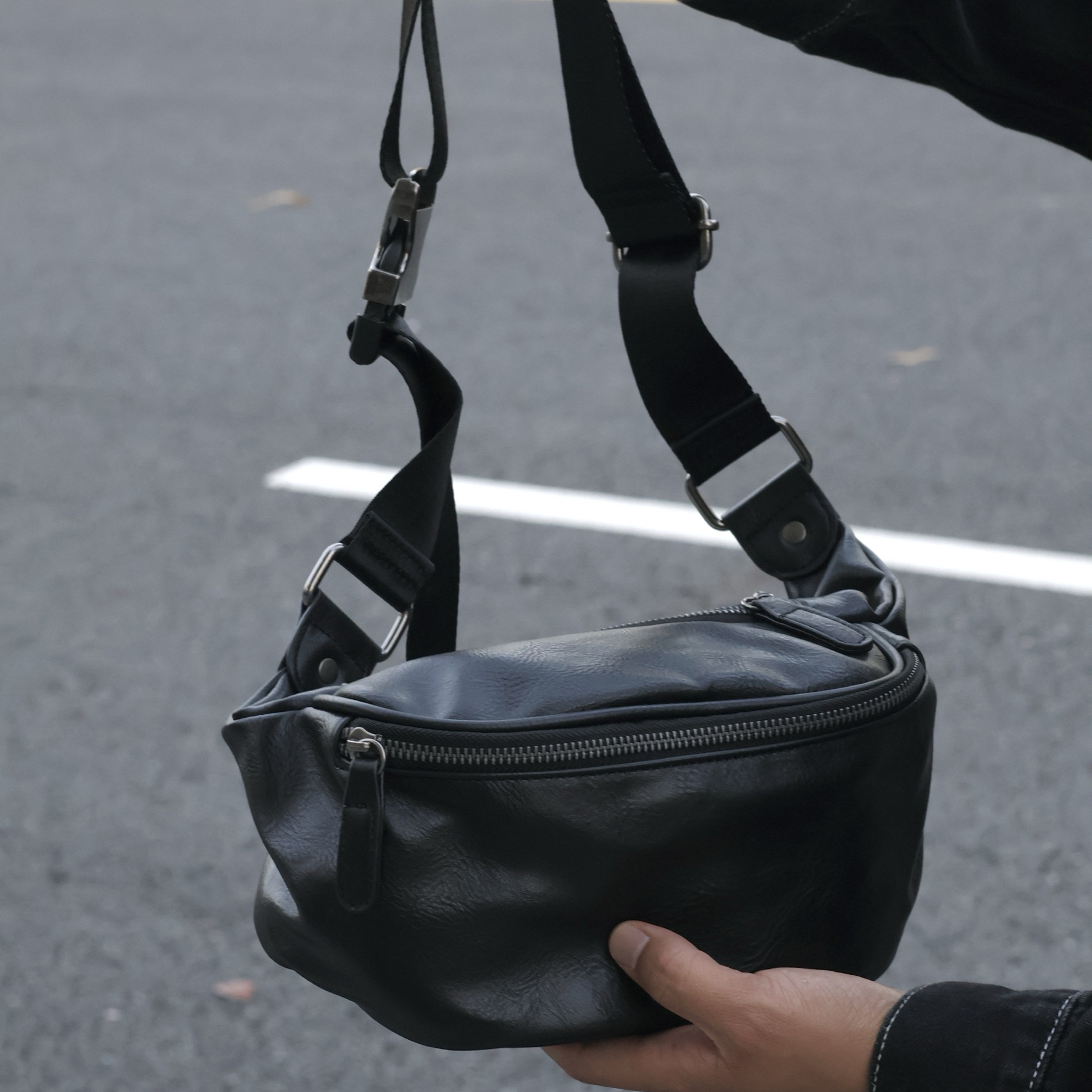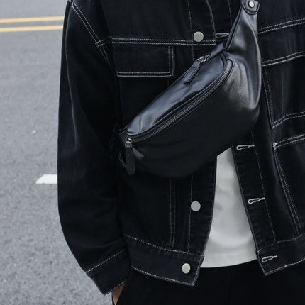 左千户包潮男时尚斜挎胸包皮质休闲轻便运动包软皮骑行包腰包小包