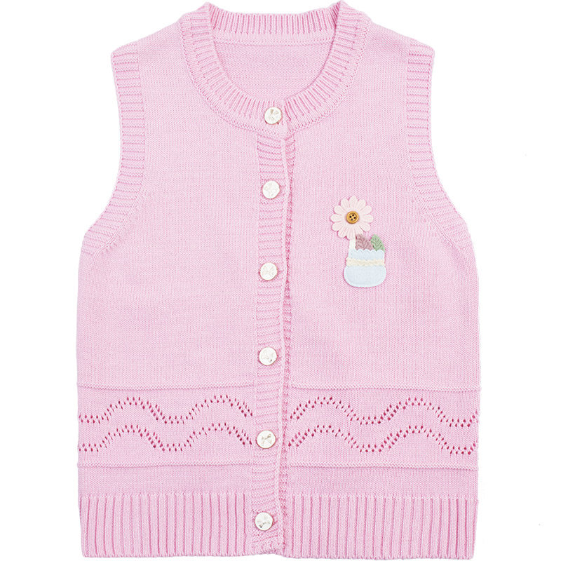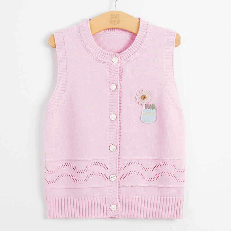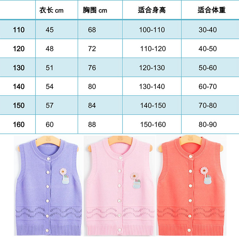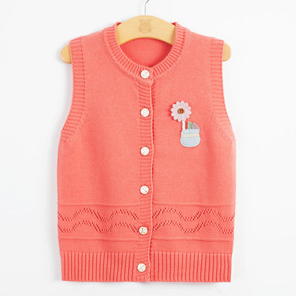 女童中大童春秋新款镂空坎肩全棉毛衣背心针织衫马甲马夹开衫圆领