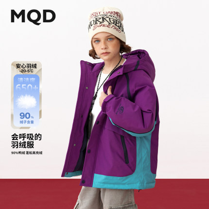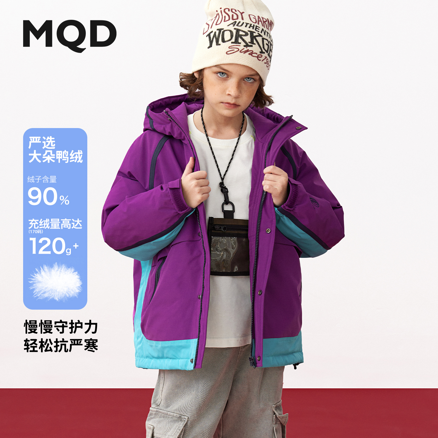 MQD童装男童三防中长款羽绒服25年新款防寒服儿童时尚多巴胺外套