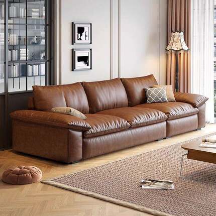 意式极简真皮沙发复古风沙发轻奢客厅简约小户型帆船复古直排皮艺