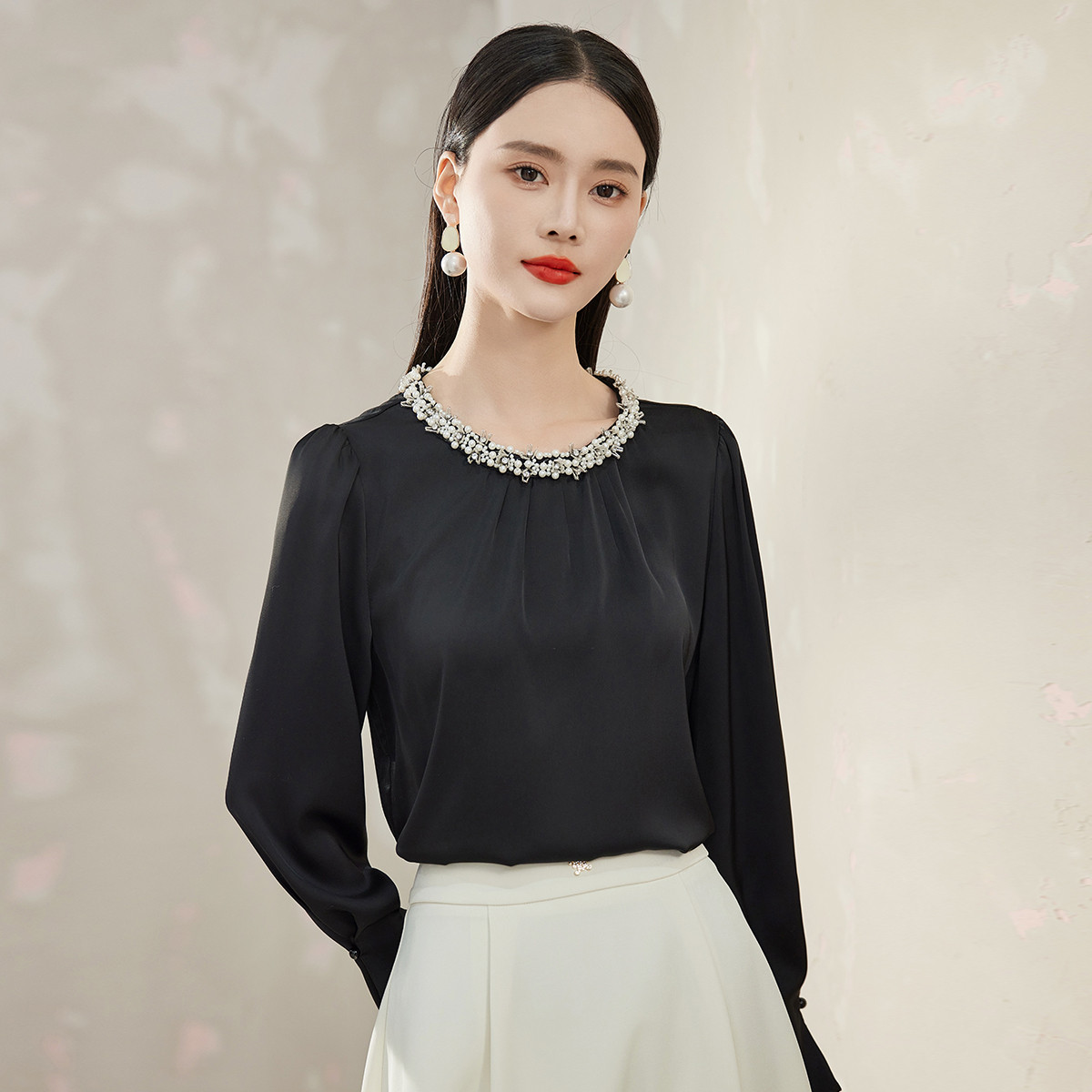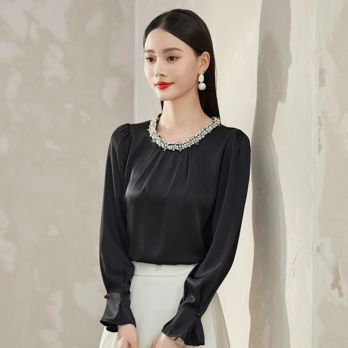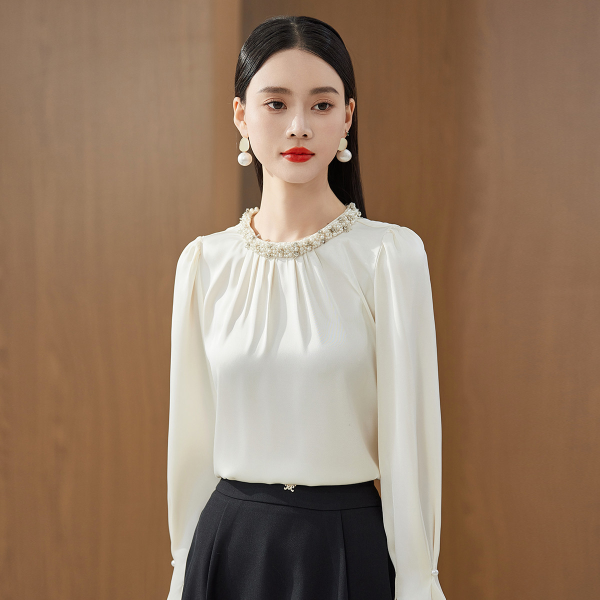 纯色衬衫2025春新款温柔气质女人味垂感顺滑舒适珍珠通勤衬衫