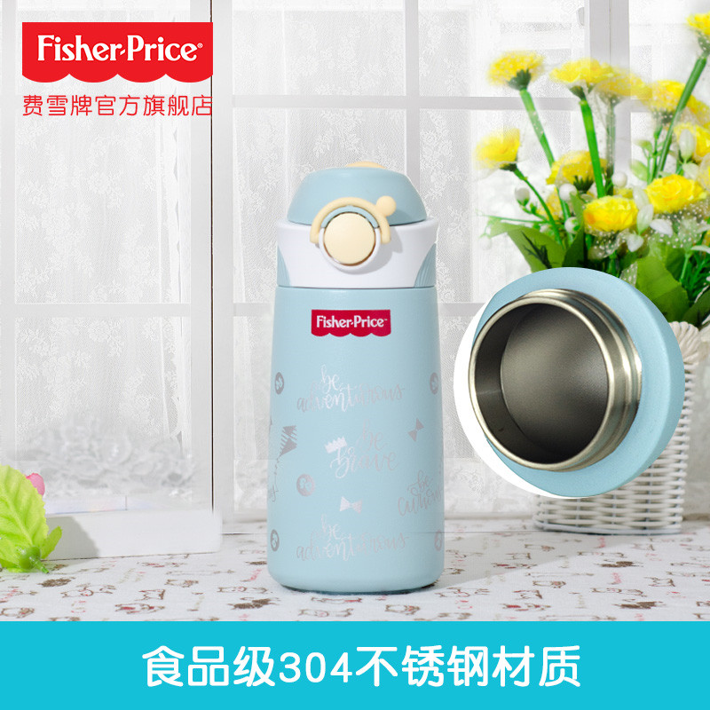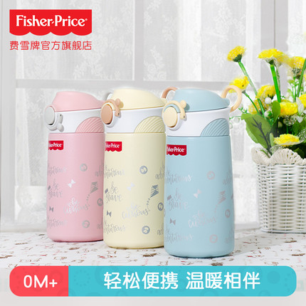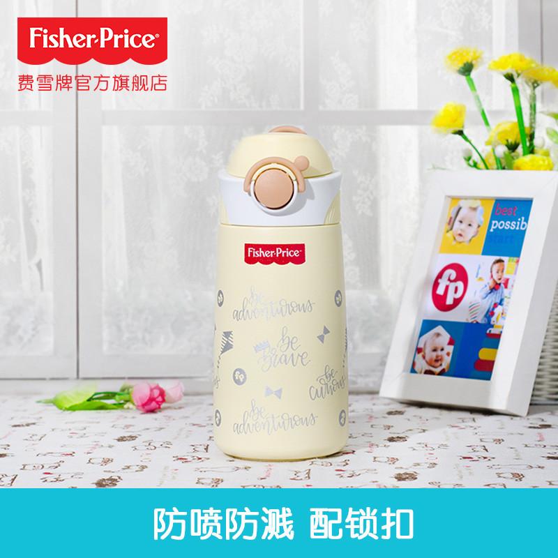 费雪380ML抽真空保温吸管杯防摔杯宝宝喝水杯保温杯吸管水杯8643