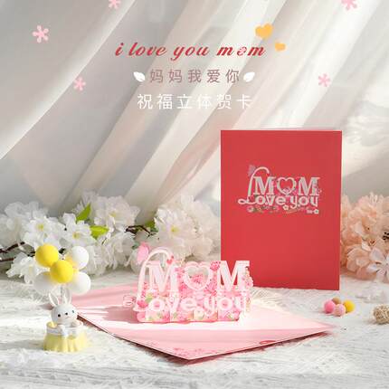 外贸亚马逊母亲节贺卡立体创意摆件送妈妈礼品卡商务爱妈妈字母款