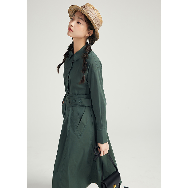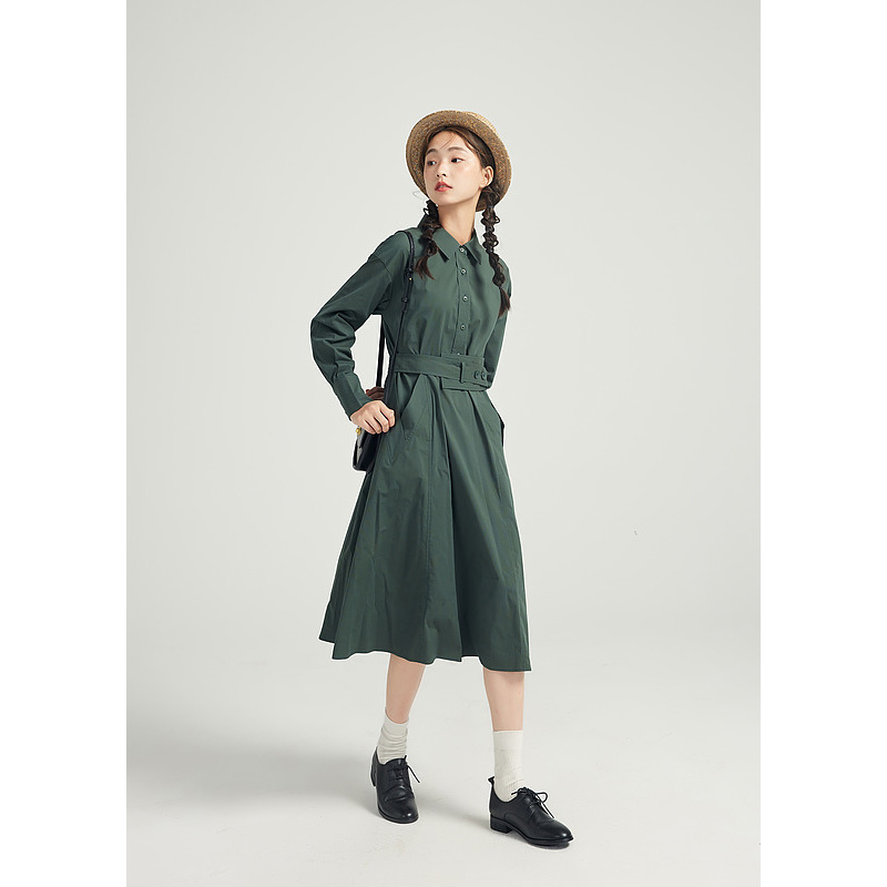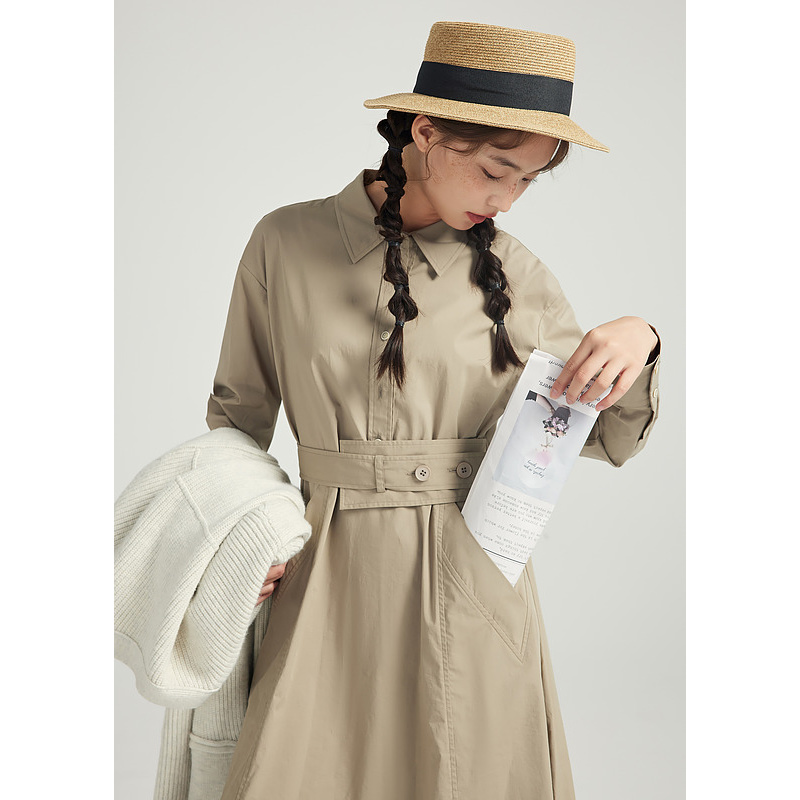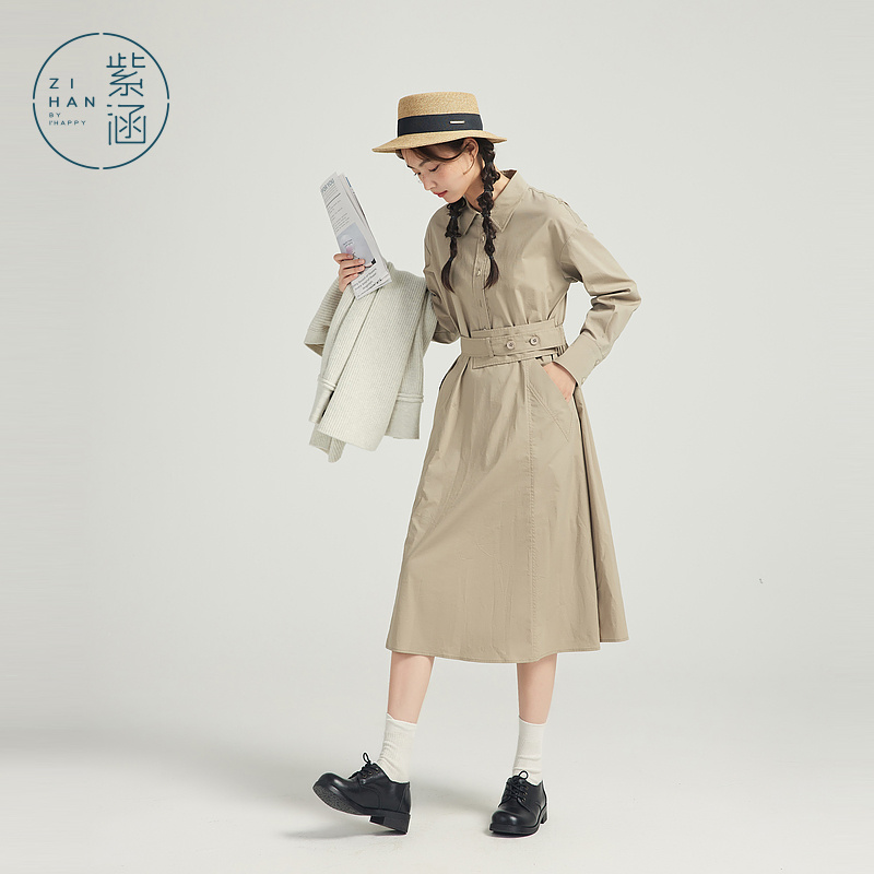 紫涵衬衫连衣裙A字中长裙女秋季小个子简约时尚减龄百搭长裙收腰