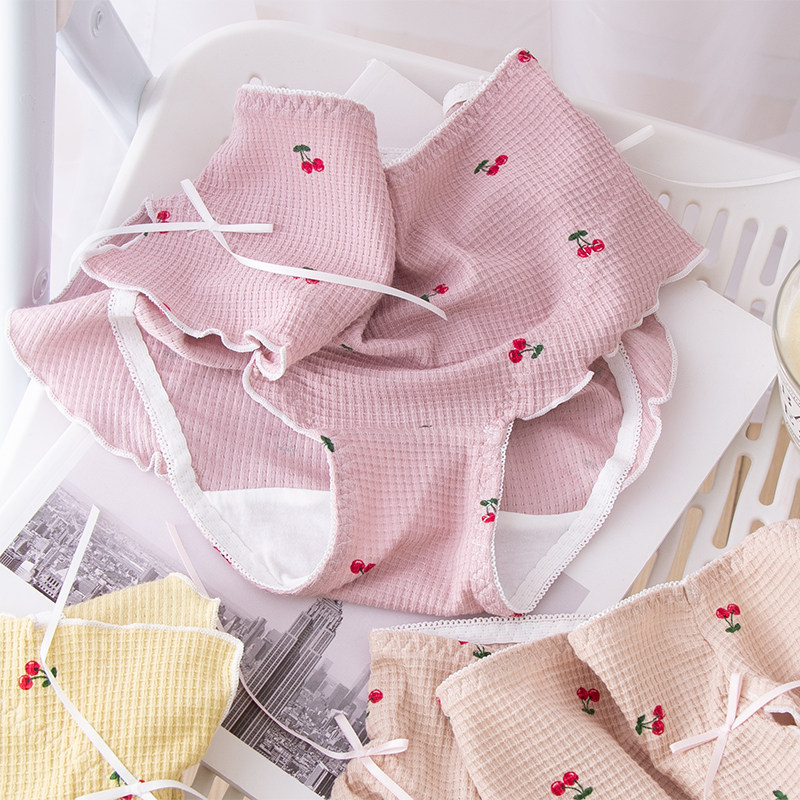 大码抗菌内裤女甜美胖MM莫代尔中腰侧边蝴蝶结包臀棉抗菌裆