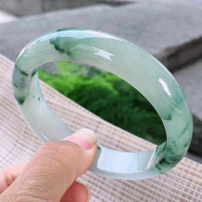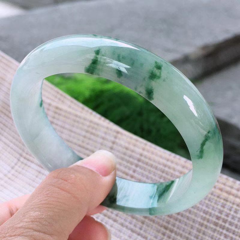 缅甸翡翠手镯冰糯种飘花玉镯子玉手镯女款玉器玉石绿绿翡翠处理