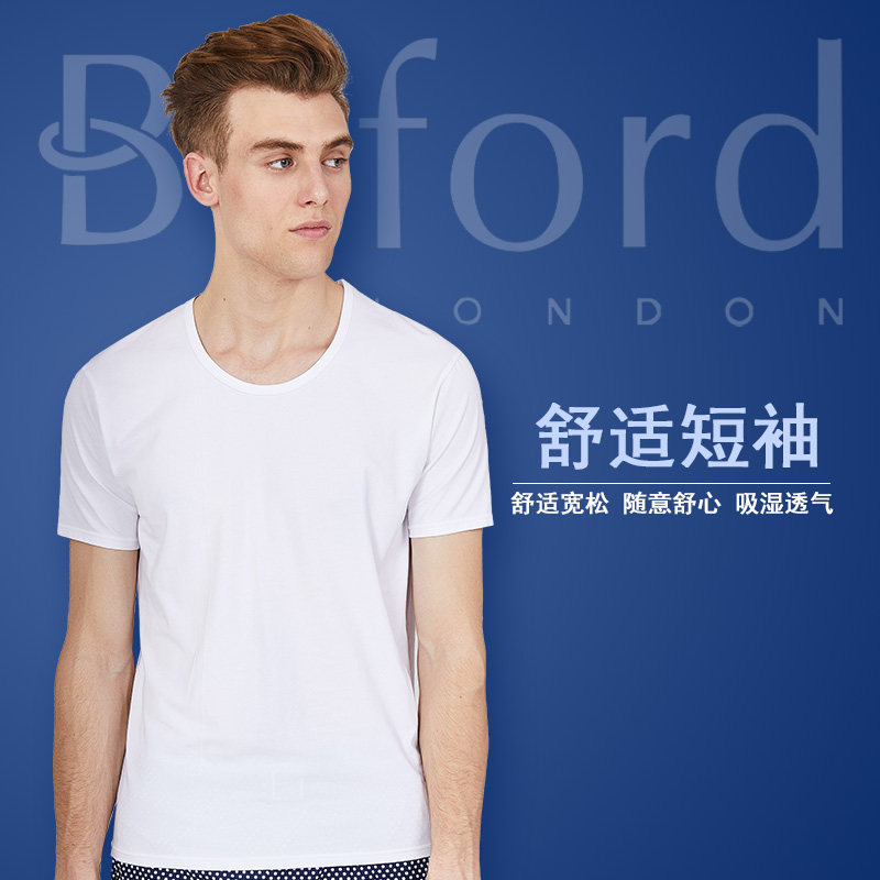 Byford/百富男士打底衫棉弹短袖T恤圆领短袖内衣文化衫-MW33012