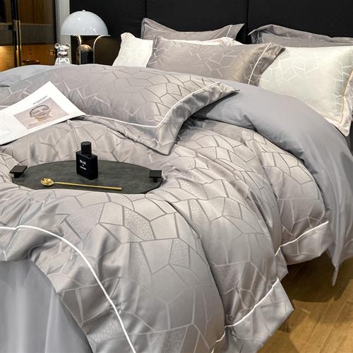轻奢欧式100支贡缎提花四件套全棉纯棉被套床笠高级感床上用品1.8