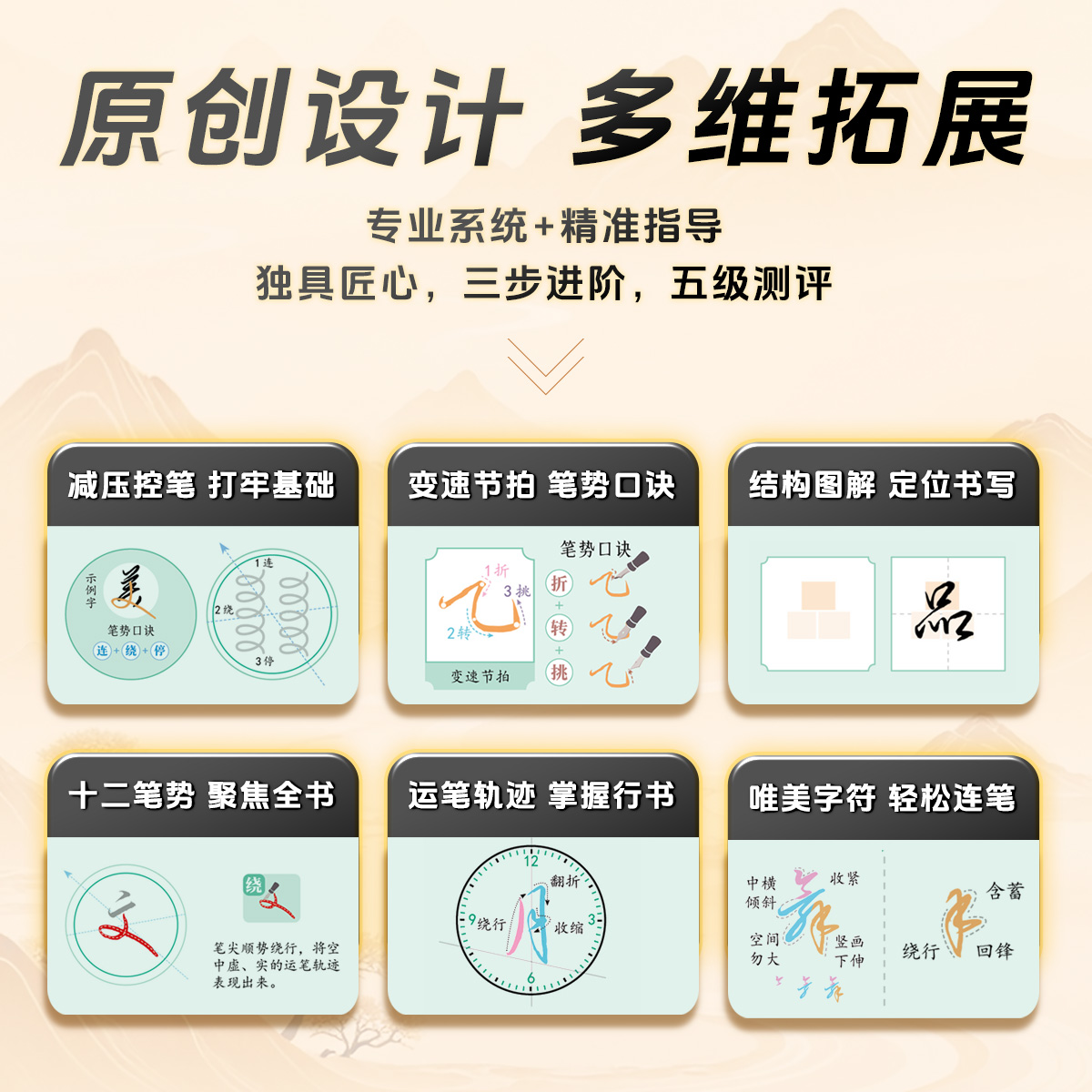行书成人练字帖通用笔势连带行楷入门控笔笔画偏旁速成法硬笔书法纸初高中大学男女生漂亮连笔描红钢笔字初学者行书每日一练字帖