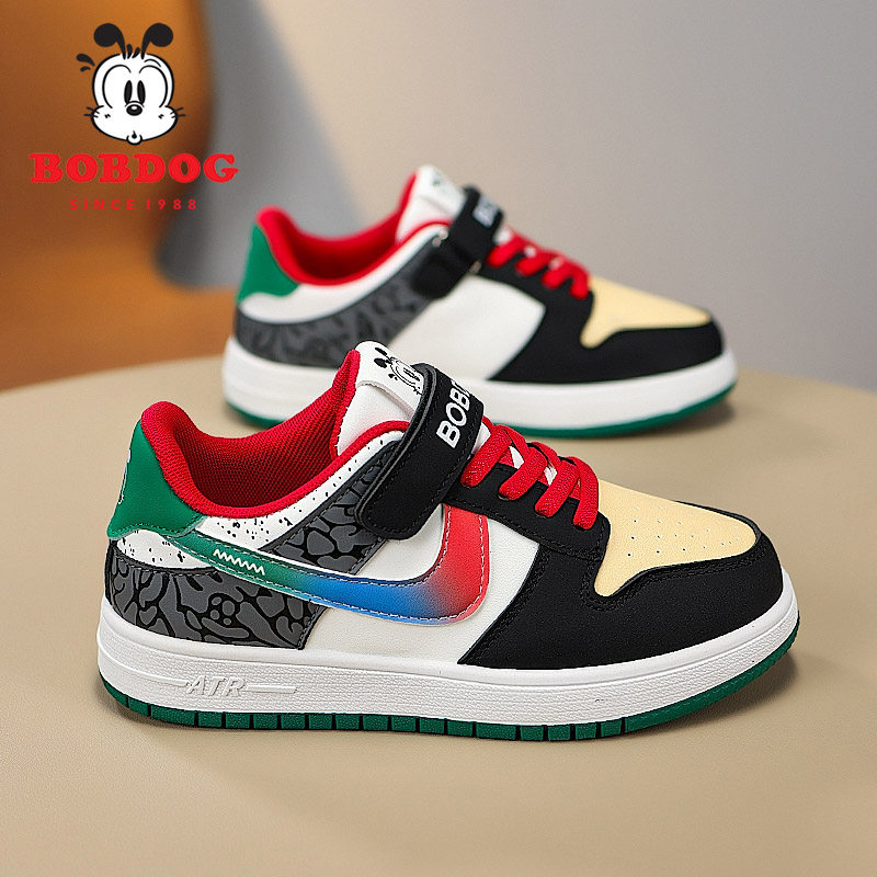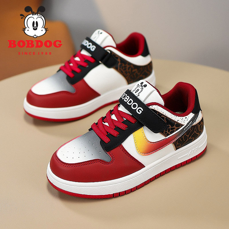 巴布豆男童aj板鞋2025春秋款儿童运动鞋皮面防水女孩软底防滑鞋子