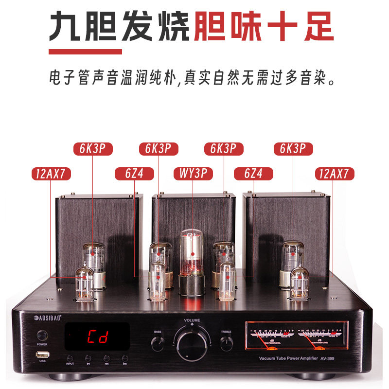 九胆hifi发烧级胆机功放蓝牙U盘电子管家用大功率功放机