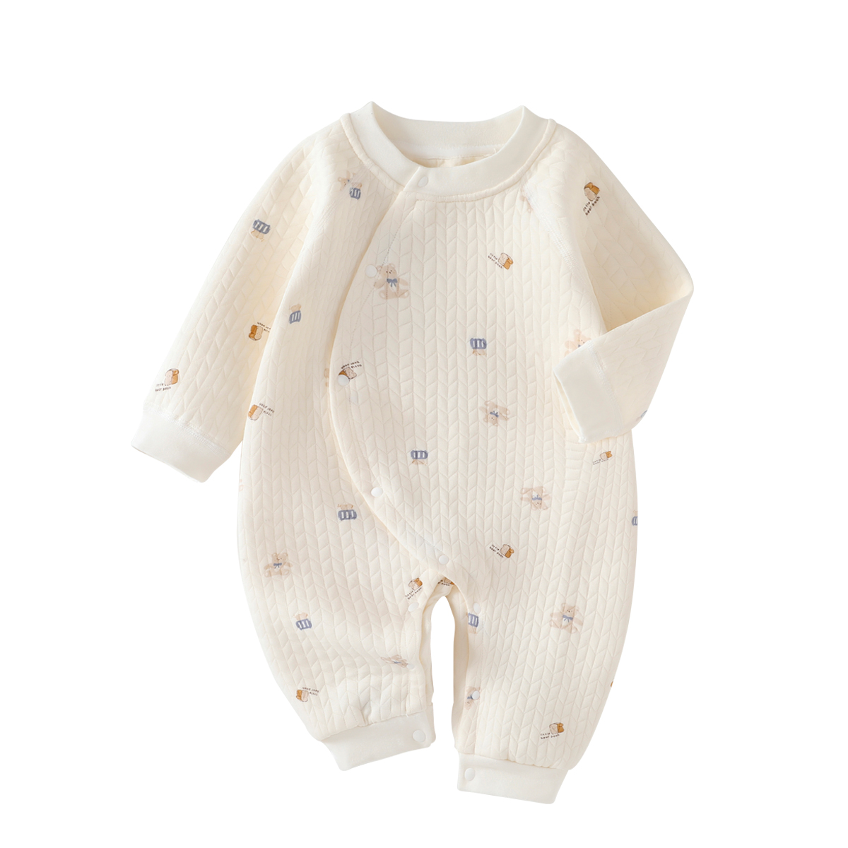 贝因美新初生婴儿衣服秋冬季纯棉宝宝保暖连体衣夹棉小月龄和尚服