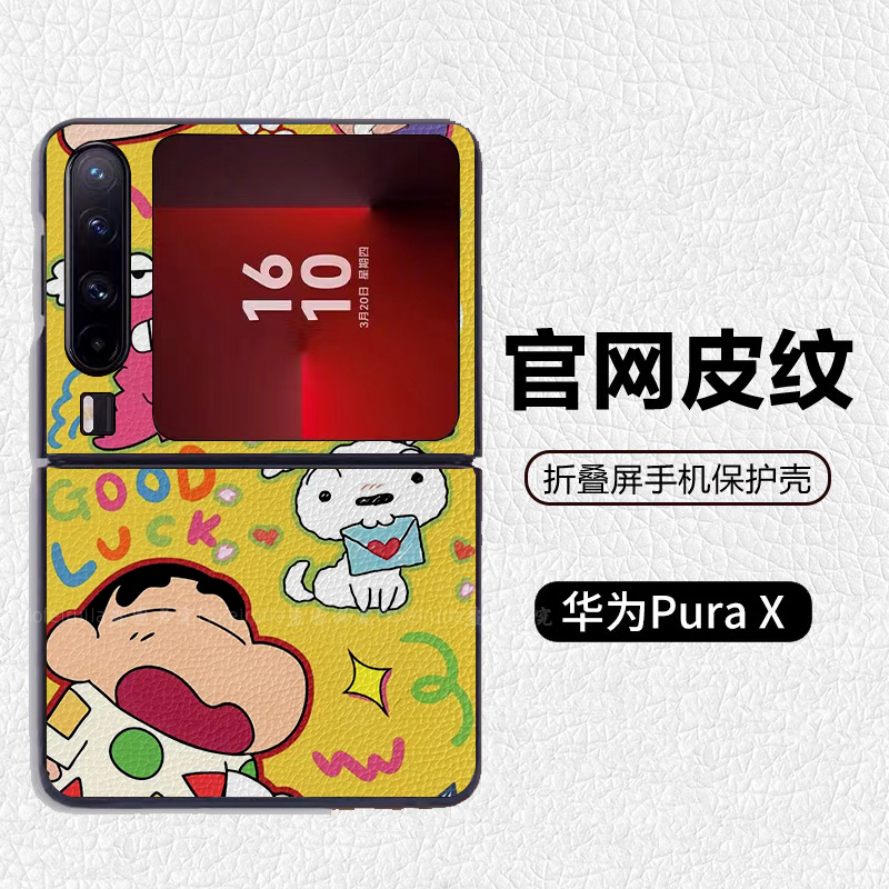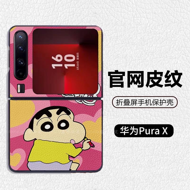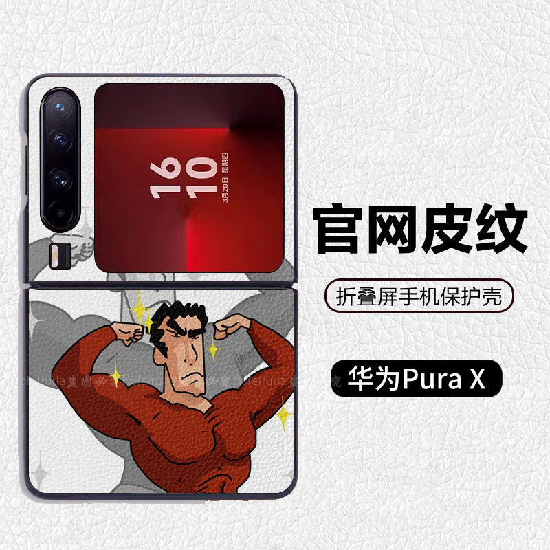 野原广志健身蜡笔小新适用华为p50pocket折叠屏手机壳Pura X高级感皮纹套 PuraX典藏版 pocket2 nova flip