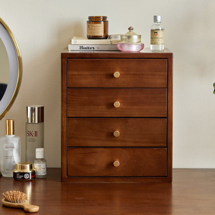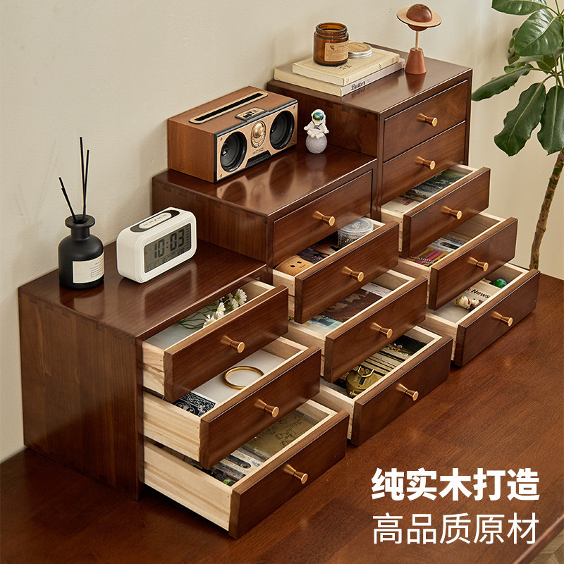 实木桌面抽屉收纳盒化妆品杂物整理盒梳妆台桌上储物盒子置物柜