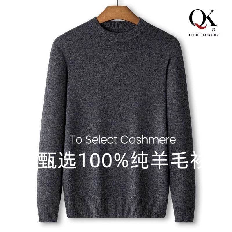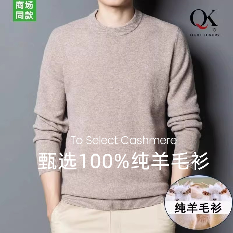 鄂尔多斯市羊毛衫男2025年冬季高端绵羊毛圆领毛衣宽松加厚打底衫