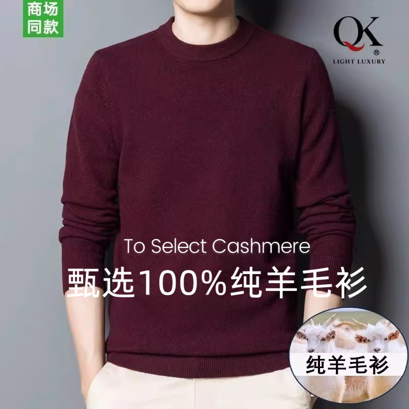 羊毛衫男冬季高端绵羊毛圆领毛衣