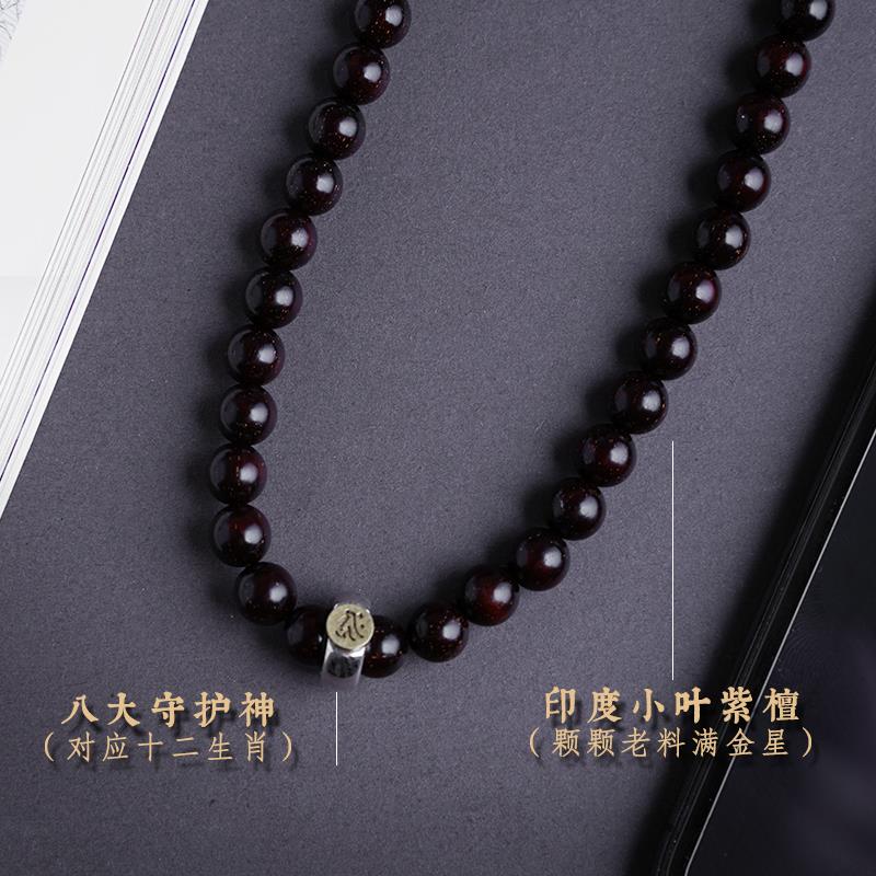 2025正宗小叶紫檀手串银镶嵌佛珠十二生肖护神木质金星本命佛男女