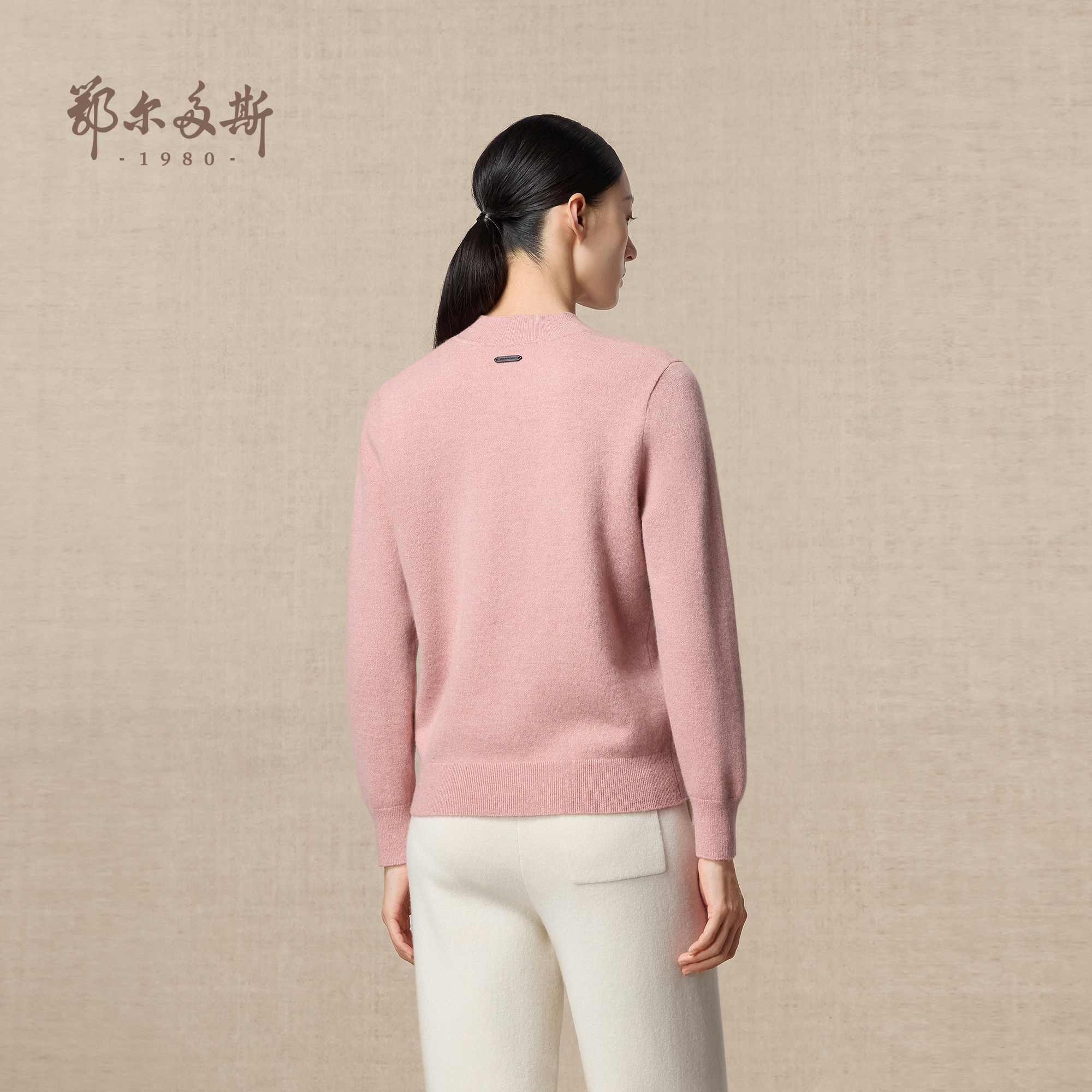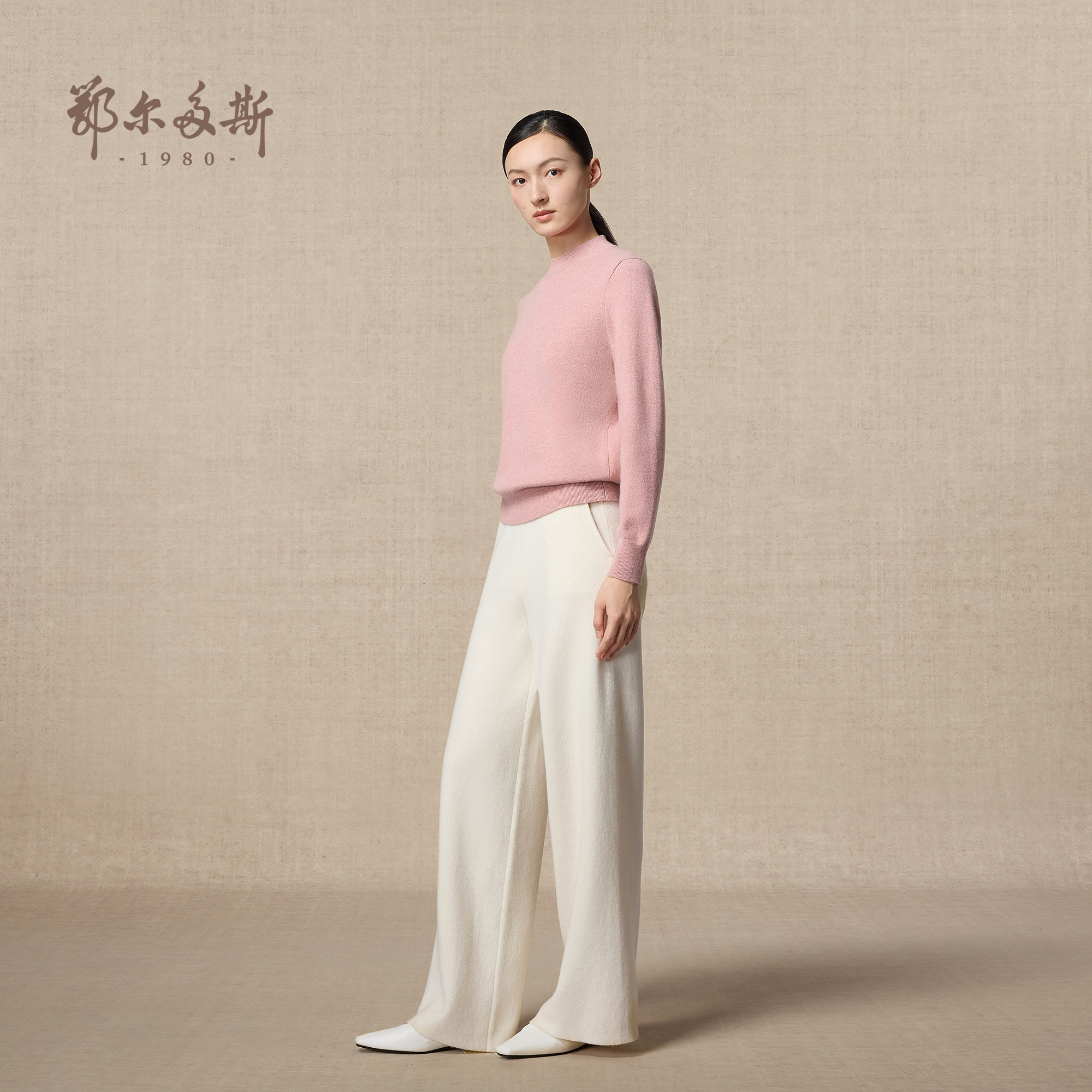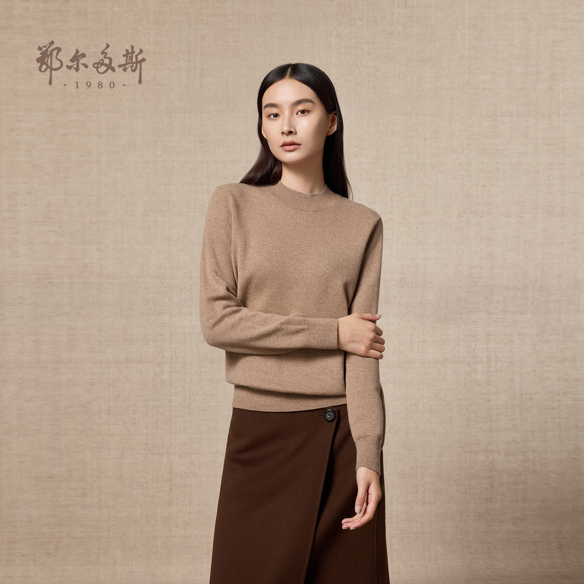 鄂尔多斯1980 半高领虚提羊绒衫女厚款纯色百搭针织衫