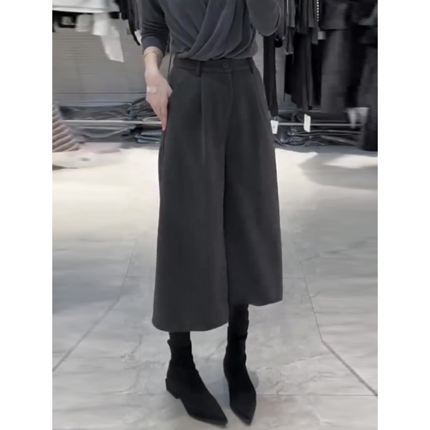 加厚毛呢阔腿裤女秋冬九分奶奶裤