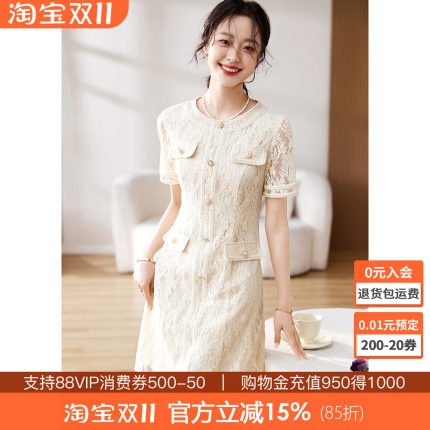 沫晗依美高级质感蕾丝小香风25夏新款纯色名媛简约气质优雅连衣裙