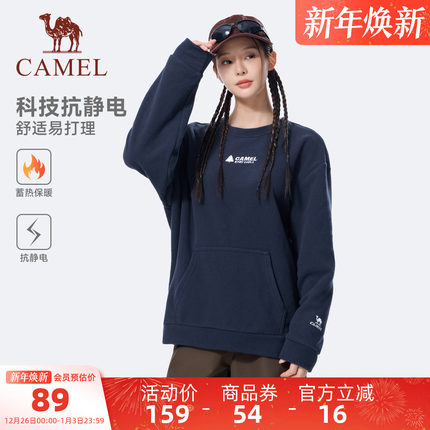 骆驼女装加绒卫衣2025秋冬新款男女保暖休闲运动套头长袖T恤上衣
