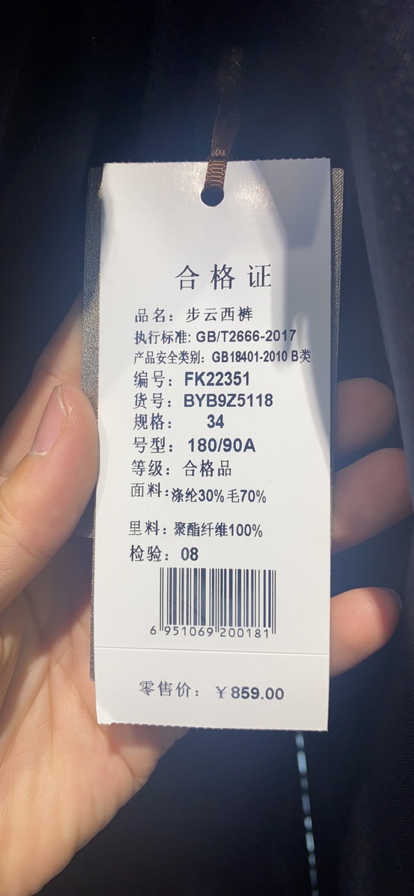 步云羊毛西裤 高端西裤 四季款免烫 藏青色纯色 宽松直筒商务休闲