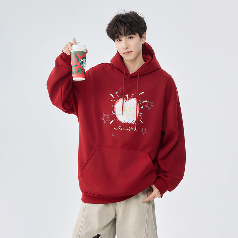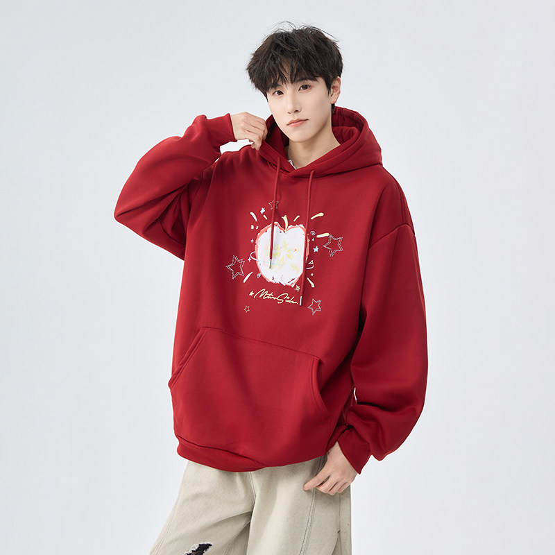 迈特优美式潮流涂鸦苹果加绒连帽卫衣男2026春秋季新款情侣款上衣