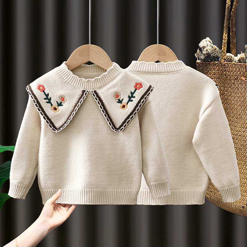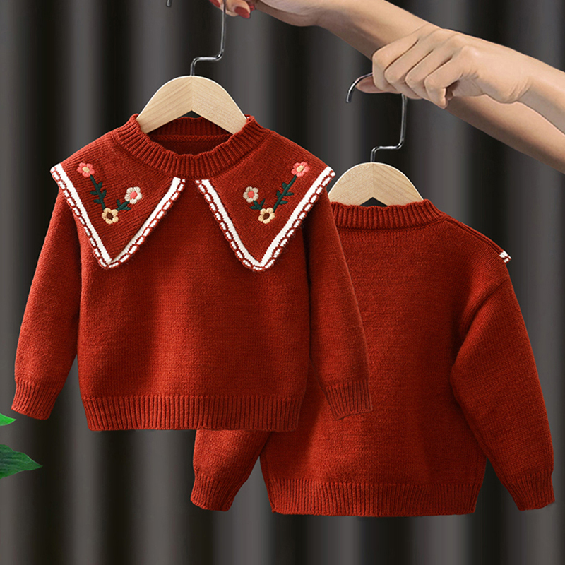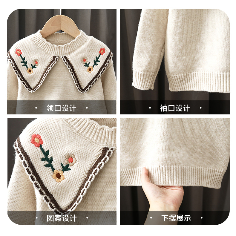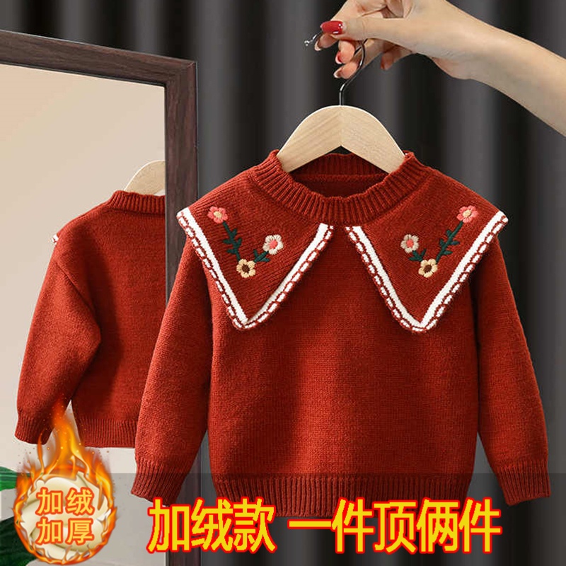 女童秋冬装大翻领针织毛衣女孩2025中大童加绒加厚内穿儿童打底衫